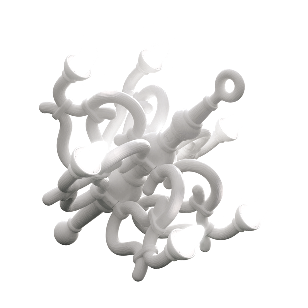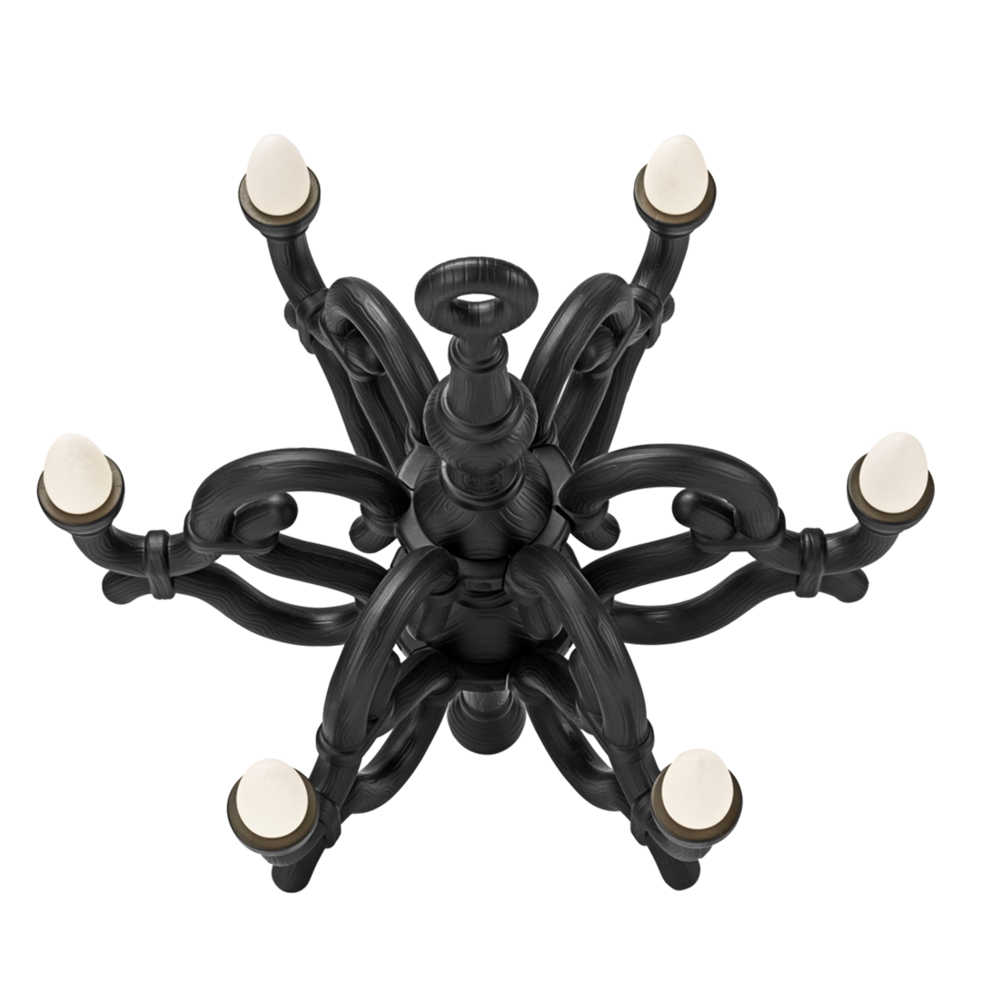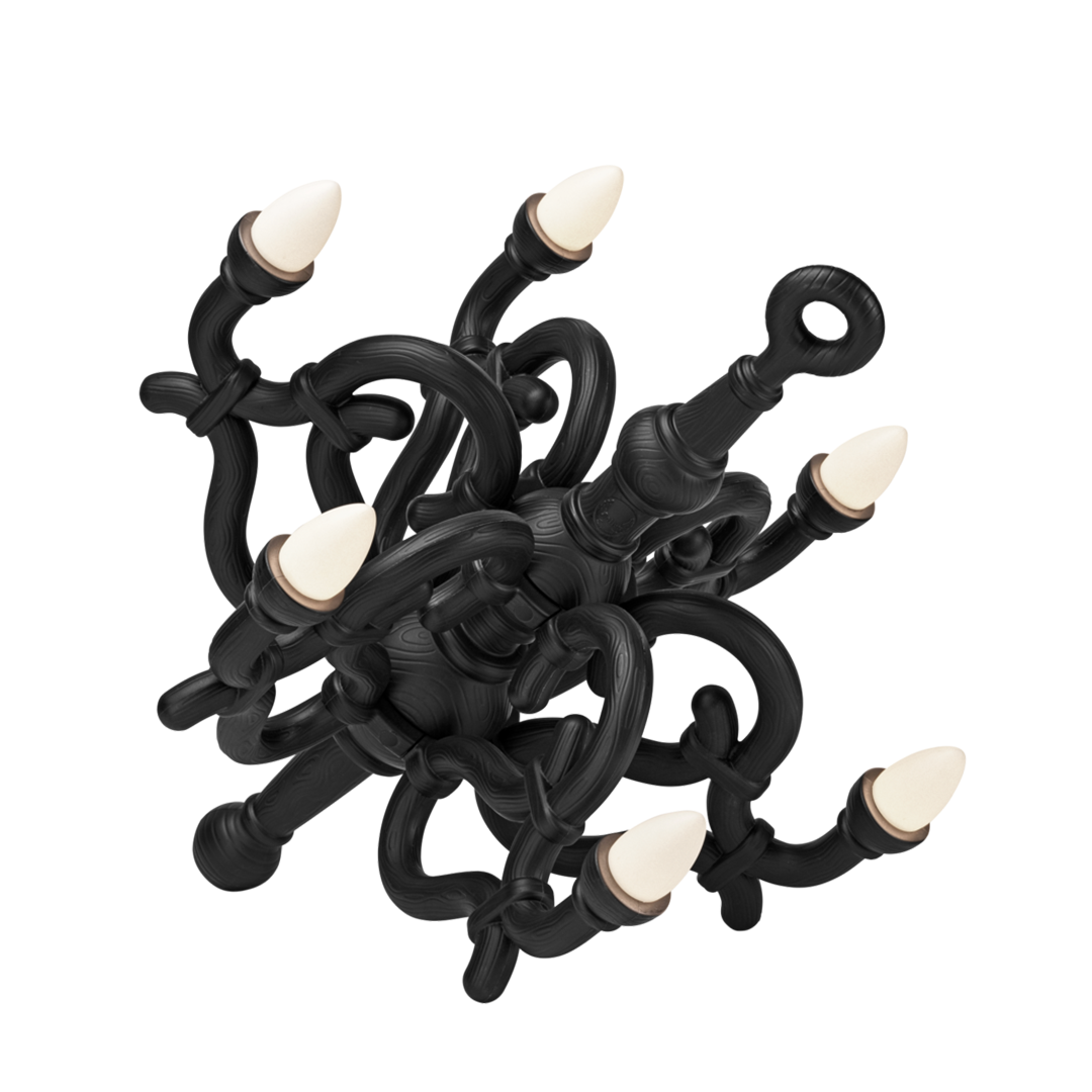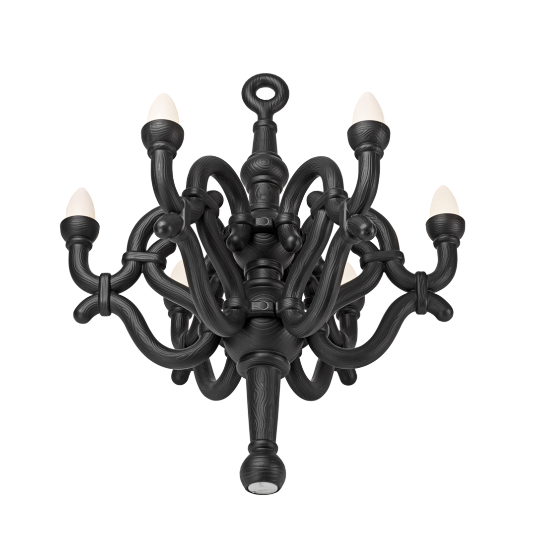 Fallen Chandelier by Qeeboo is an M size wireless rechargeable lamp suitable for indoor environments, designed by Studio Job. Influenced by 19th century Thonet classic curves, this object travels through times to be the outstanding protagonist in each place it lives in and accompany you in a timeless dream of elegance. It can be regulated from a distance by remote control.