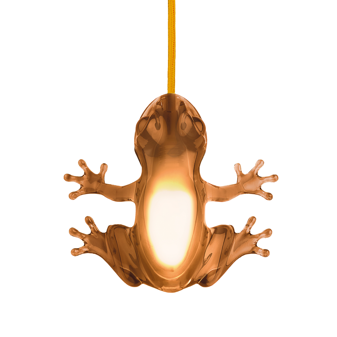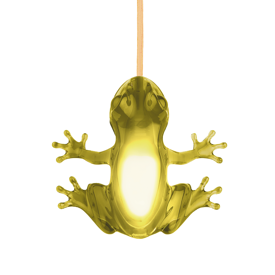 Designed by Marcantonio, Hungry Frog by Qeeboo is a small table/wall lamp with the shape of a frog which has eaten the lamp bulb that is now lighting up in its stomach.