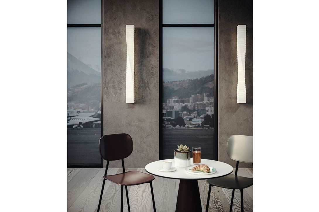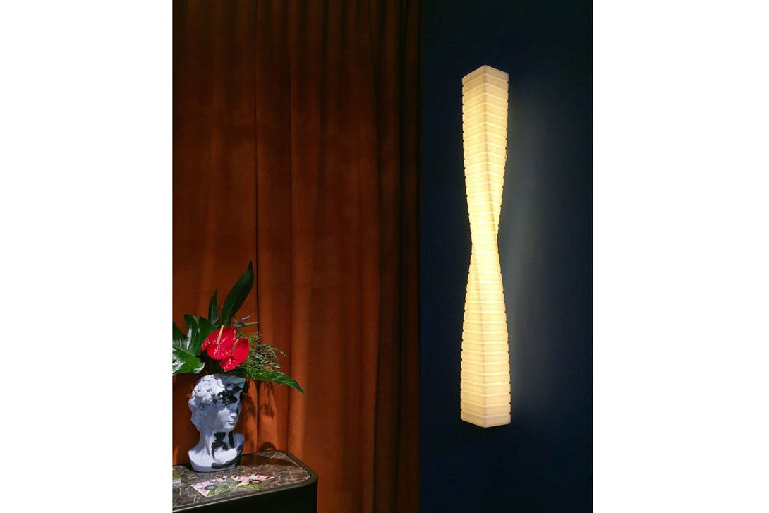 Fabio Novembre creates for Slide Spin wall lamp version. The design of Spin reminds of the twist of a parallelepiped element with a square base, the same design of the hanging lamp version. The lines that covered its surface, make Spin richer. The lighting effects enhance the shape of Spin and create lounge and welcoming atmospheres. Spin wall version is available in Light White, Light Vanilla and in Mosaico finish.