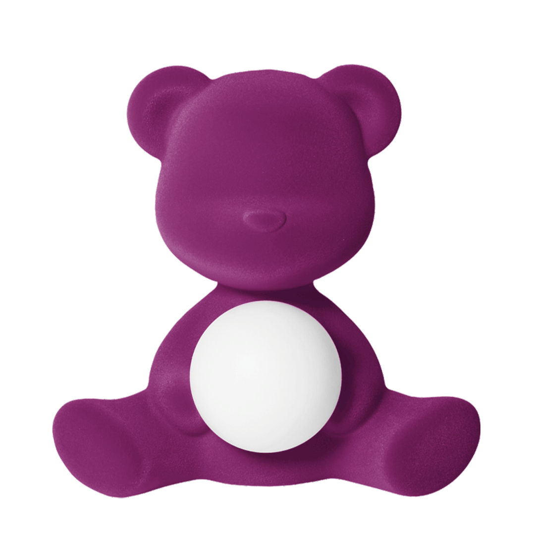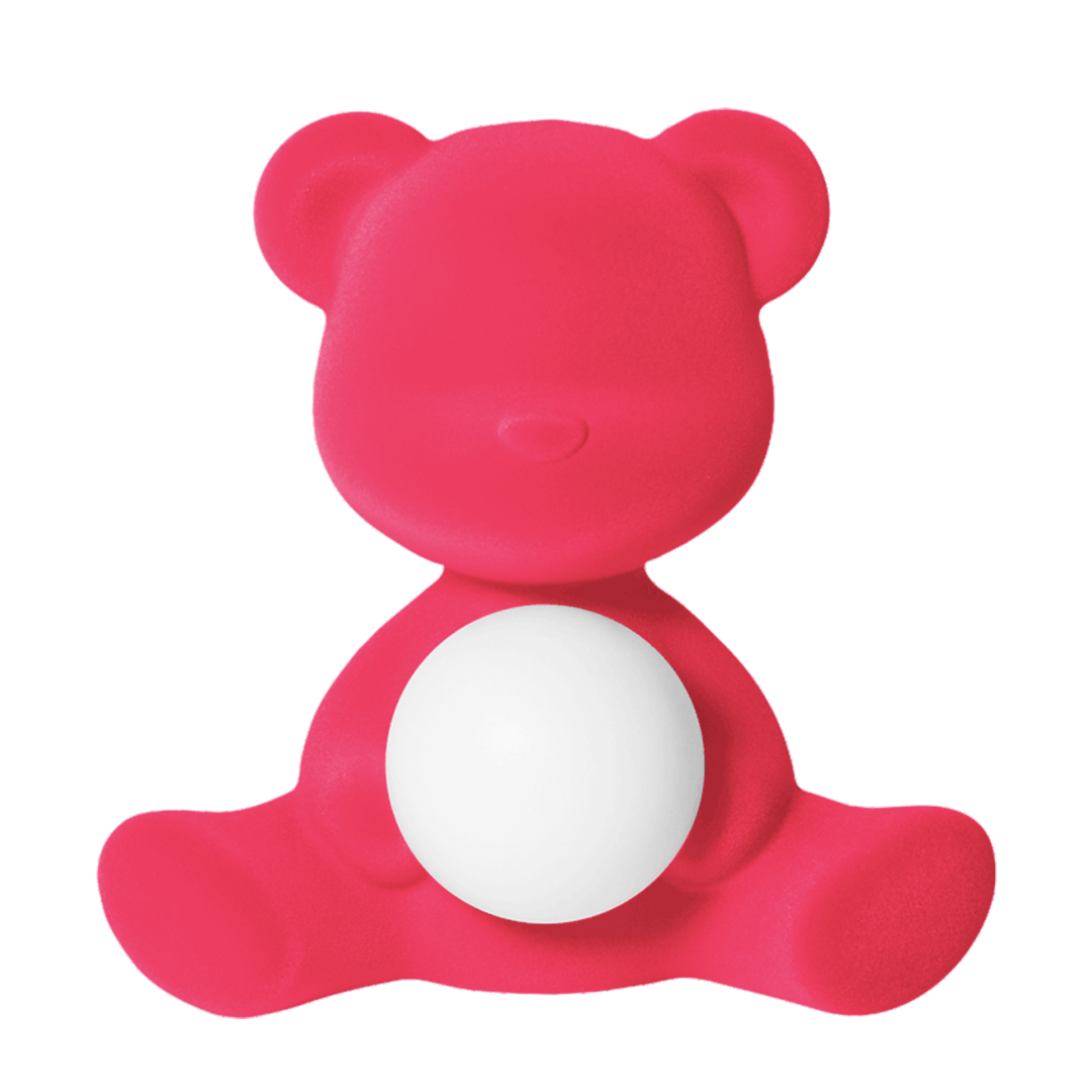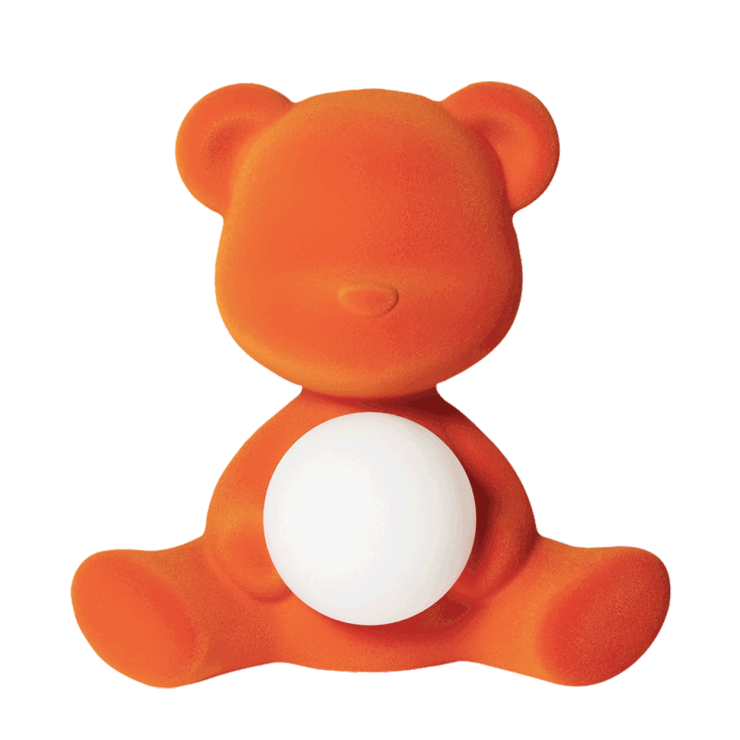Designed by Stefano Giovannoni in the looking of a traditional Teddy Bear, Teddy Girl by Qeeboo is a wireless rechargeable table lamp, embracing a small luminous sphere. Timid and delicate, it brings to light the little teddy bear's tender soul. With its soft velvety surface Teddy Girl is a call for cuteness!