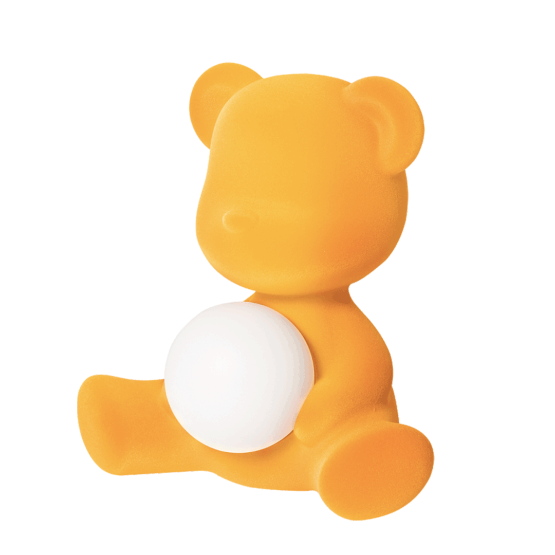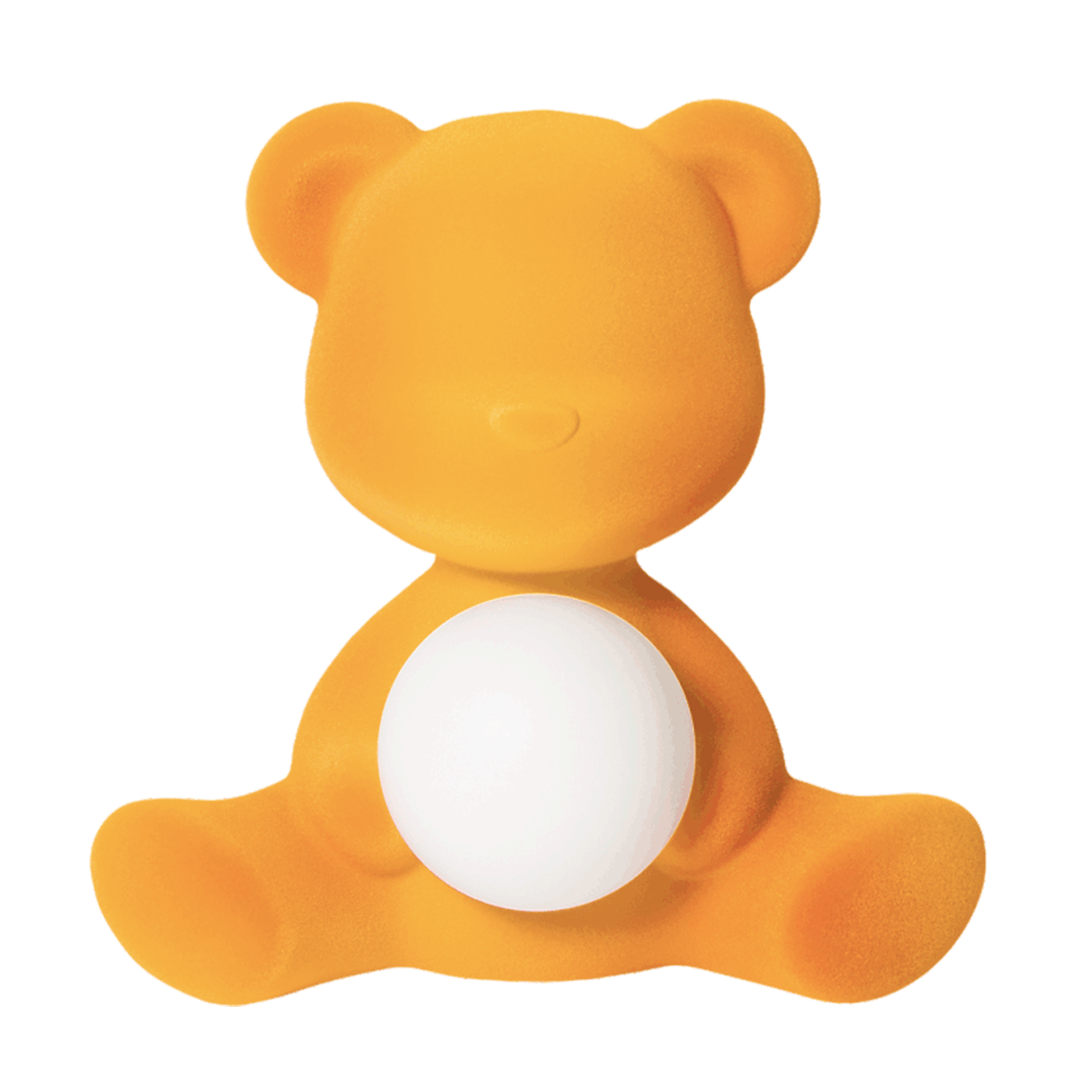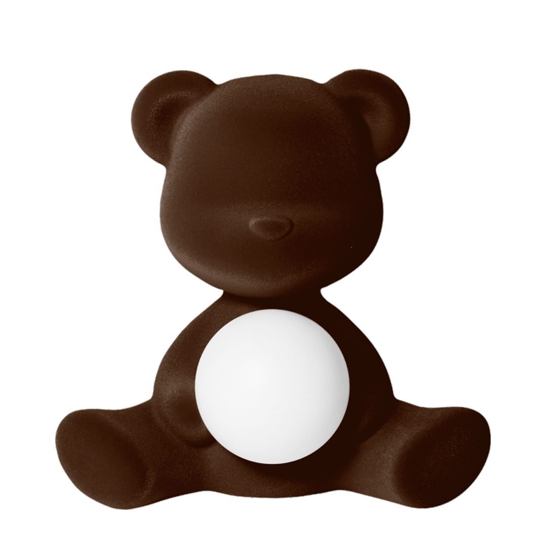 Designed by Stefano Giovannoni in the looking of a traditional Teddy Bear, Teddy Girl by Qeeboo is a wireless rechargeable table lamp, embracing a small luminous sphere. Timid and delicate, it brings to light the little teddy bear's tender soul. With its soft velvety surface Teddy Girl is a call for cuteness!