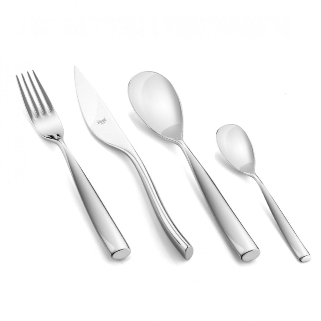 The set includes 6 table forks, 6 table spoons, 6 table knives and 6 coffee/tea spoons. The whole collection is dishwasher-safe, will not stain or oxidize and is highly resistant to corrosion.