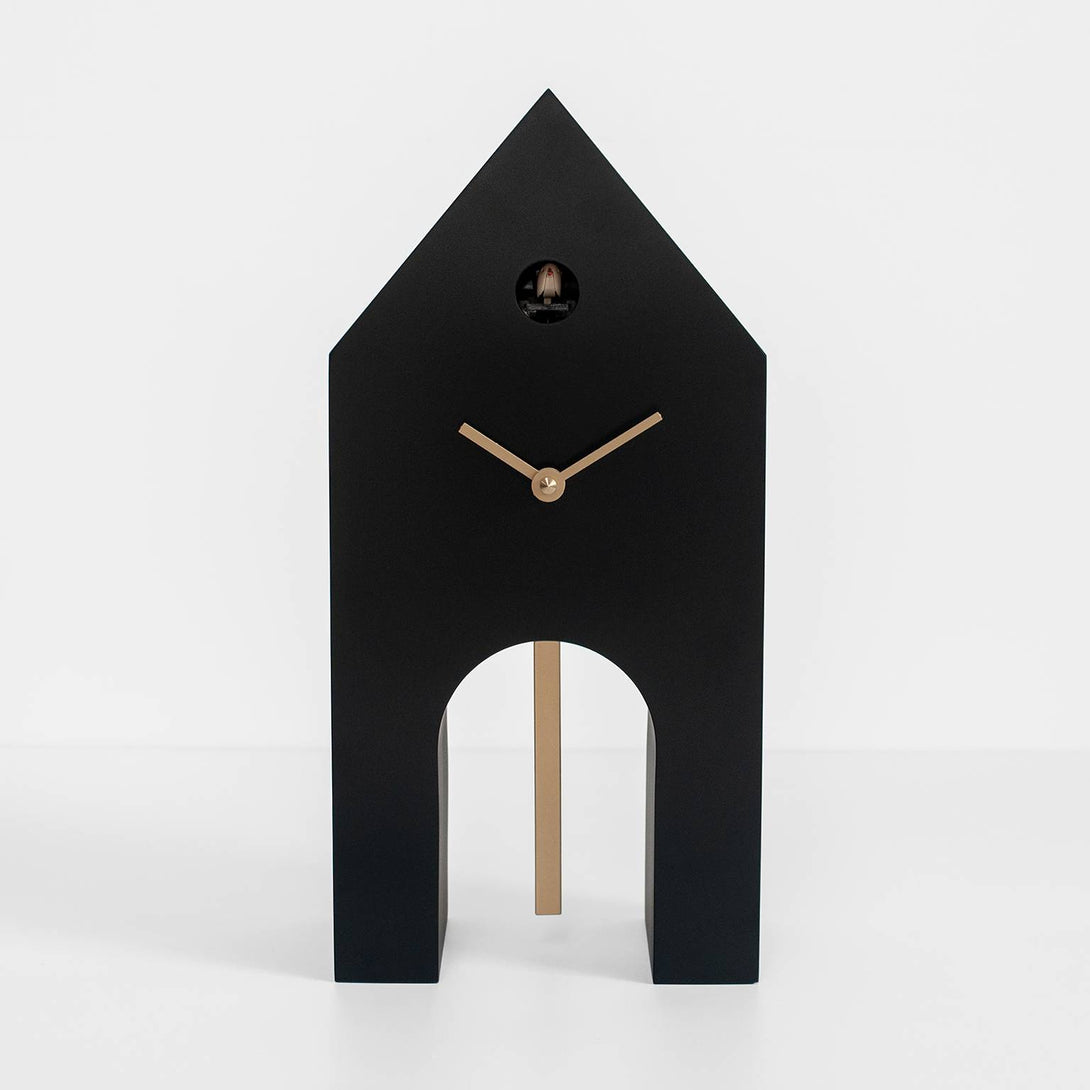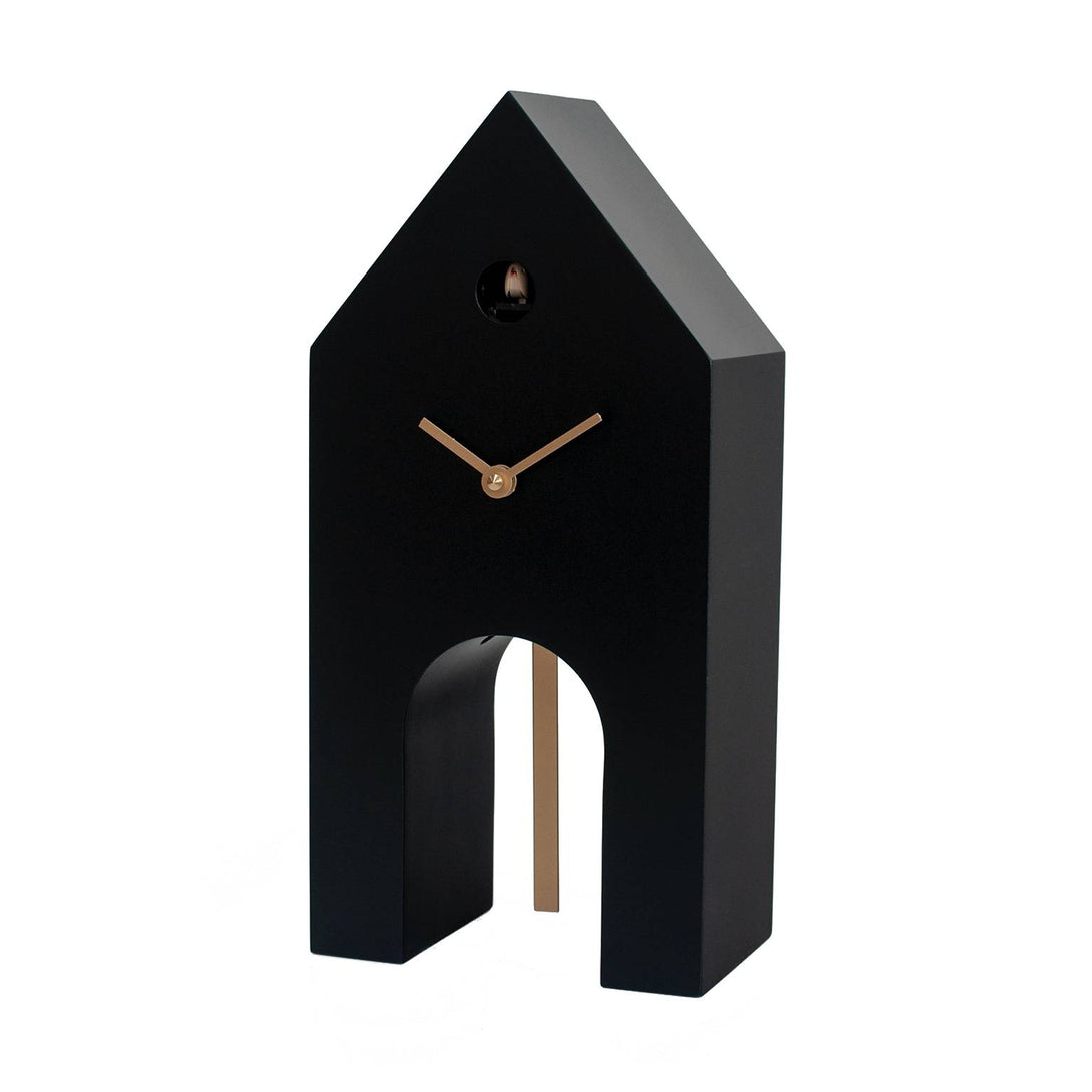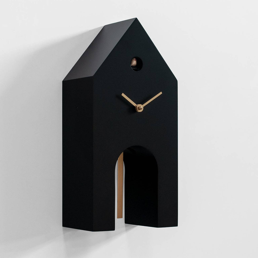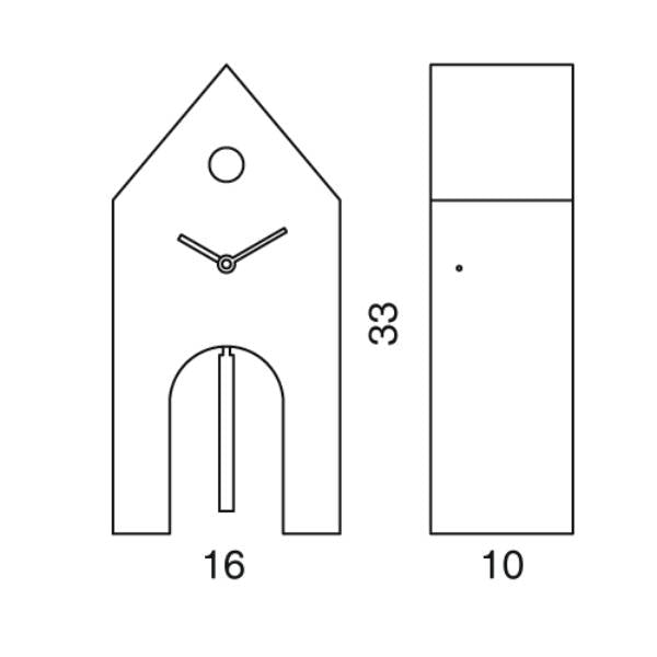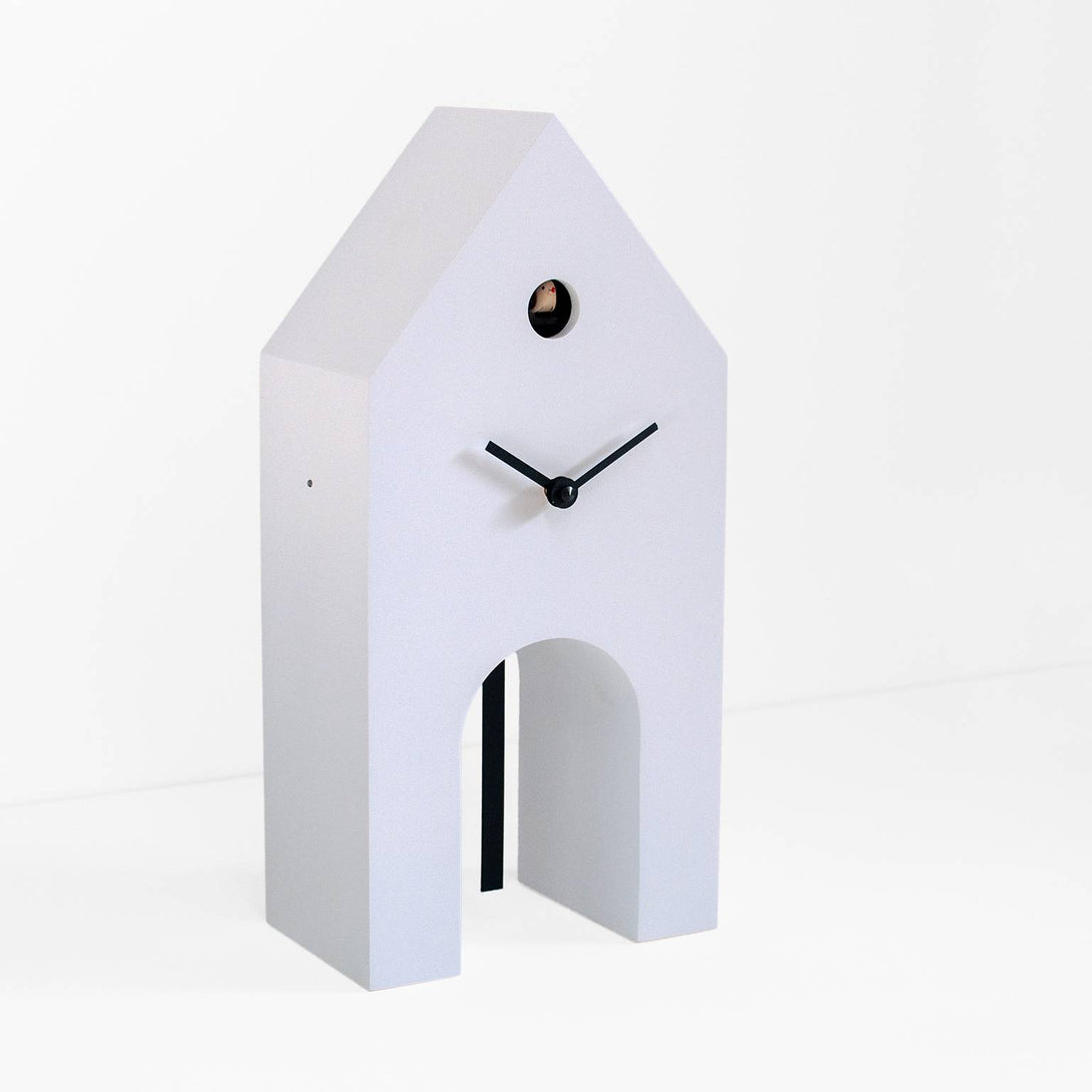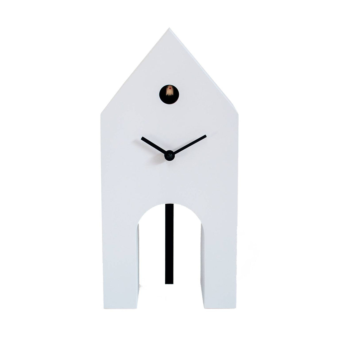Campanile Cuckoo clock by Progetti features simple geometric shapes skilfully combined by designer Domenico Cimino to create a harmonic whole. This extremely high quality product is made of wood coated with non-toxic paint. Used either wall mounted or free standing, it adapts admirably to any elegant environment.