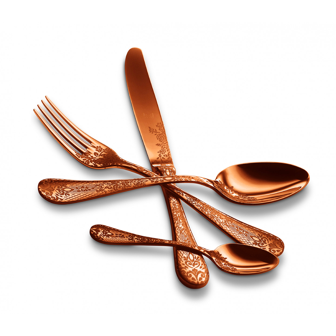 Exclusively designed for Mepra by English architect Louise Jenkins, this collection of cutlery takes inspiration from silverware produced during the Victorian and Edwardian eras, when cutlery pieces were considered jewels adorning the table, goods of beauty that could delight both hands and eyes. In the same way, Casablanca range managed to transform an everyday item into an object of functional beauty.
