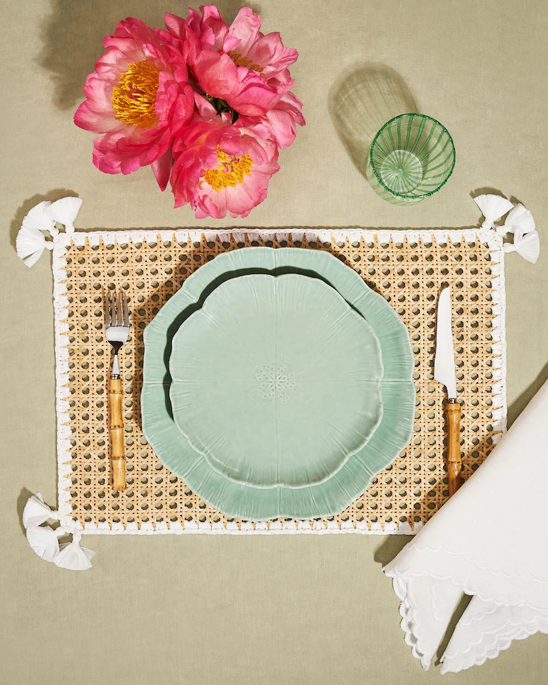 Moving from Edgardo Osorio's penchant for tablescaping, Aquazzura's signature motifs, tactile embroideries, and vibrant prints crowd the homeware collection while evoking the stylistic atmospheres from Japan, China, and India.