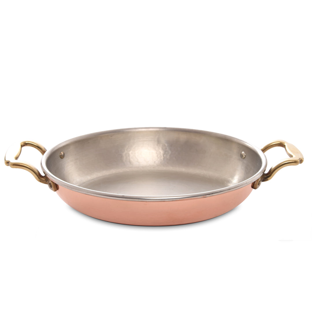 Copper Oval Flared Pan by Tanucci, timeless design and powerful performance for perfect cooking. Ideal to use as serving pans too.