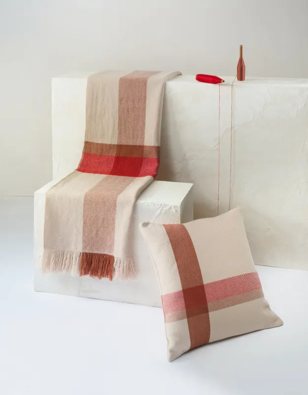 This beautiful multicolored cushion, handwoven in Italy, blends two diverse weaving techniques for a variety of textures.