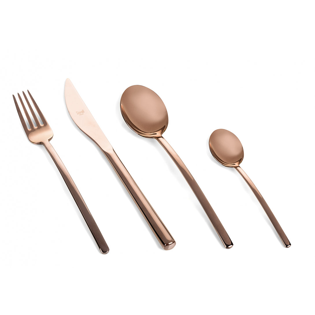 Setting an elegant table requires the finest dinnerware, starting from the cutlery. This bronze cutlery set will add exclusiveness and style to your table. Part of the Due Bronzo Luxury collection by Mepra, an exclusive collection of tableware and serveware with striking lines and precious finish.