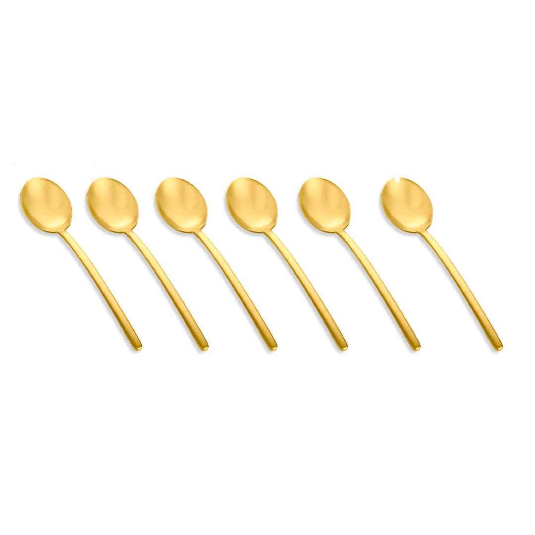 Add a touch of glamour and style to your daily coffee routine and impress your guests with these elegant brushed gold spoons. Complement your set with other pieces from the Due Ice Oro range for a truly stunning dinnerware set.