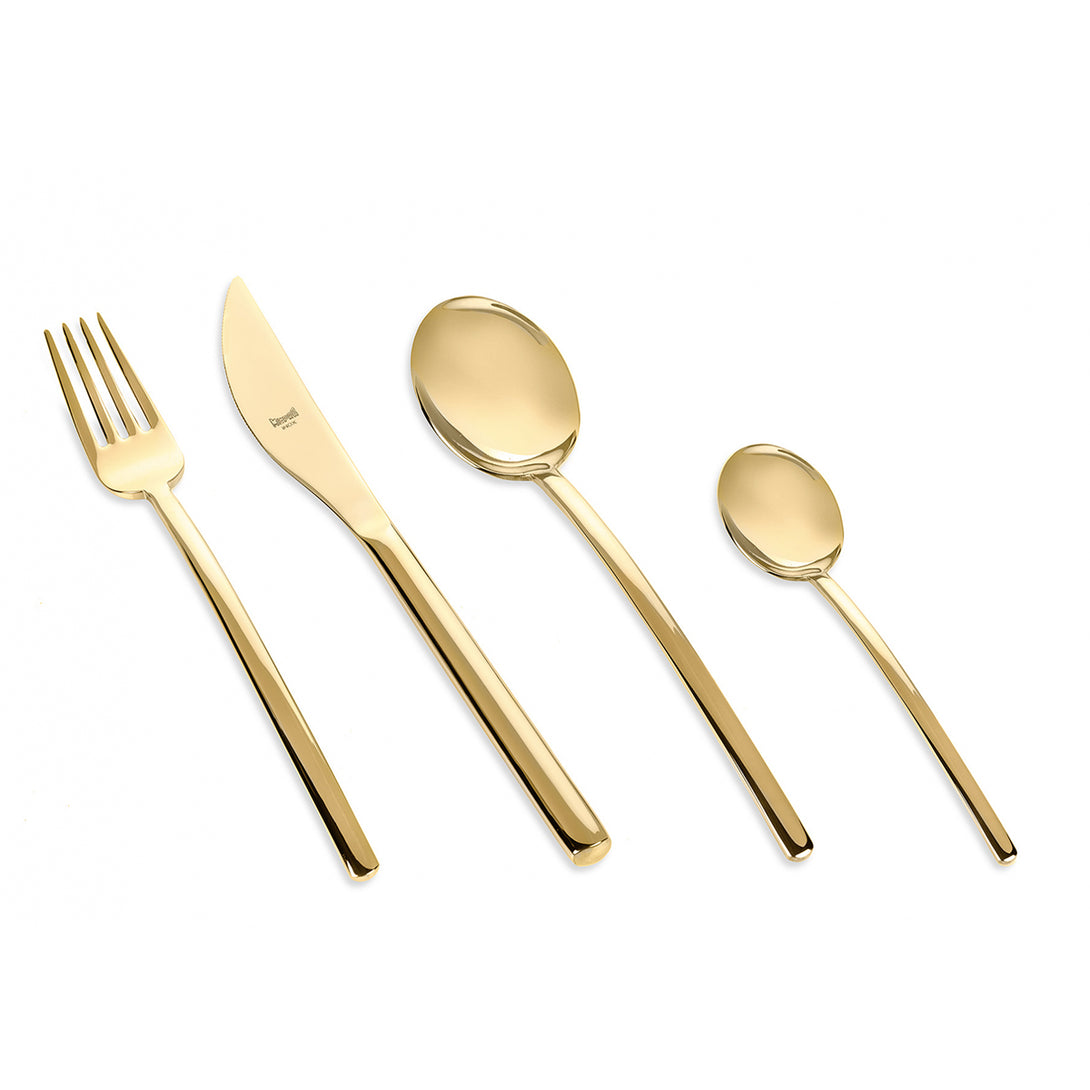 Setting an elegant table requires the finest dinnerware, starting from the cutlery. This gold cutlery set will add a touch of exclusiveness and style to your table. Part of the Due Ice Oro Luxury collection by Mepra, an exclusive collection of tableware and serveware with striking lines and precious finish.