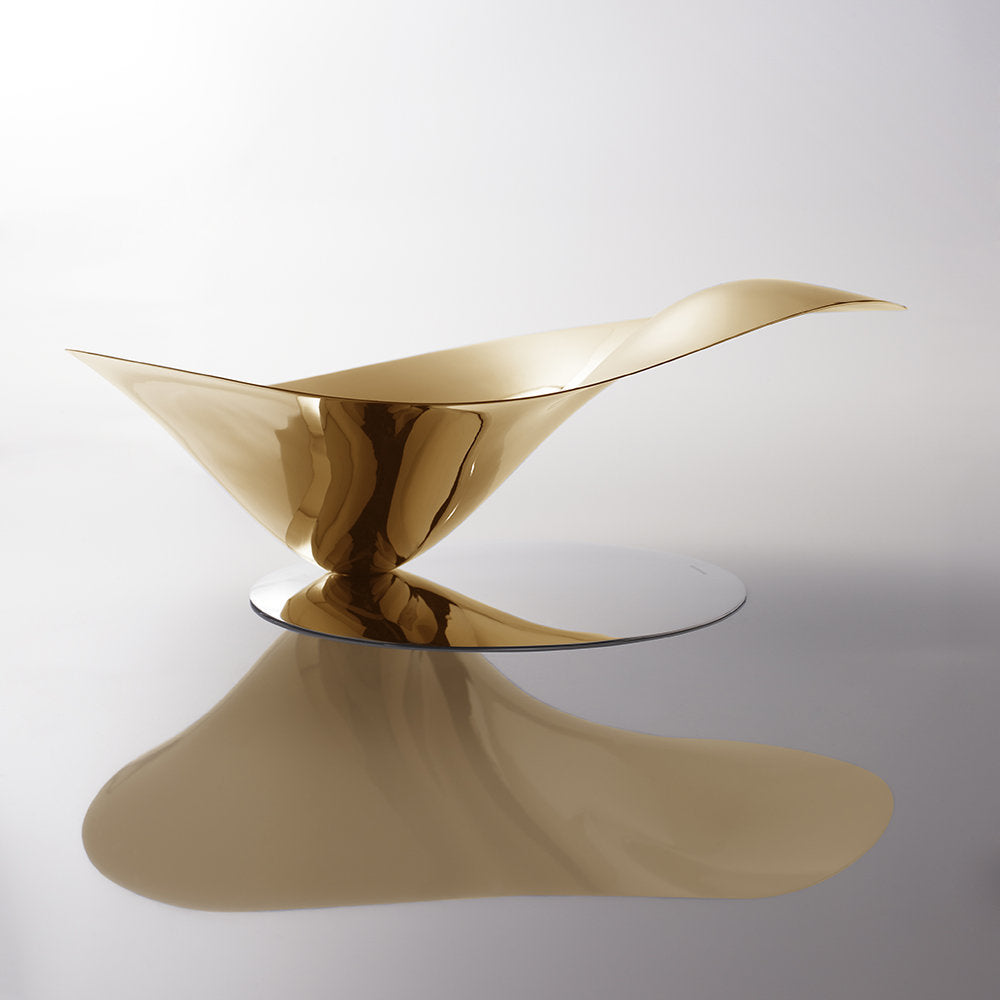 Petalo is Bugatti's centrepiece that projects a kinetic, delicate, sensitive and seemingly ephemeral form, as if suspended in air. This fruit bowl centrepiece is the ideal decorative feature for a refined and elegant embellishment of your table. The centrepiece is made of stainless steel and is enhanced by the precious gold finish. The perfect home accessory.