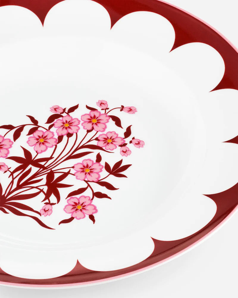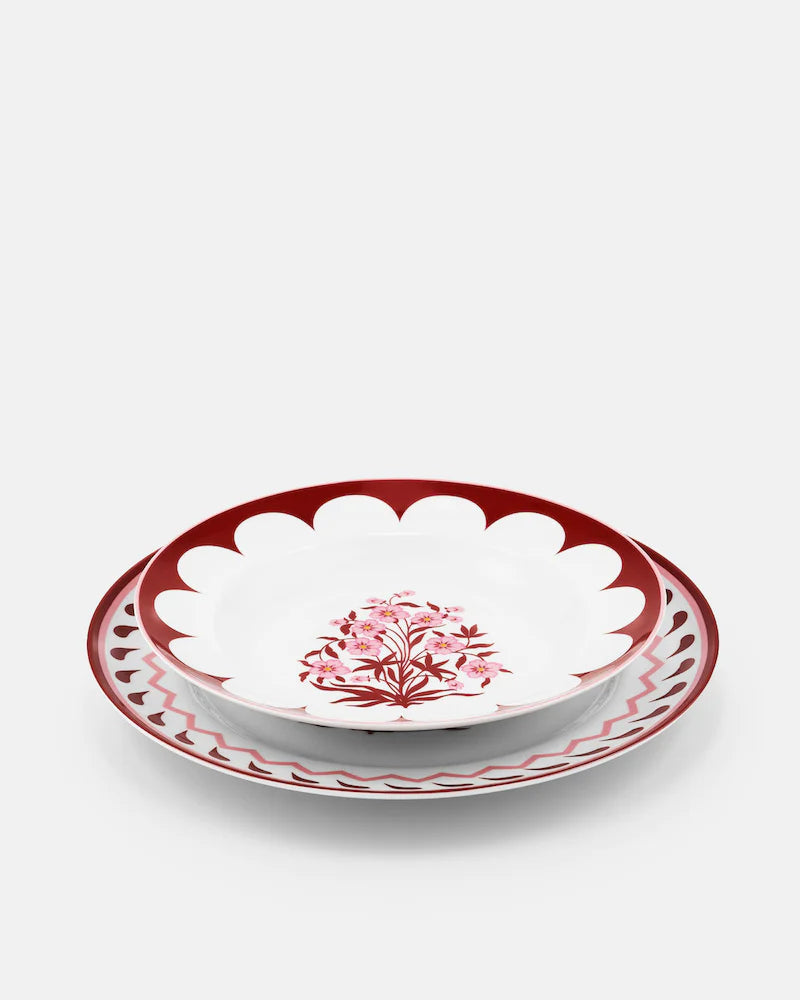 Capture the attention of your dinner guests with Aquazzura Casa's Jaipur Soup Plate. Crafted from premium porcelain in a bordeaux and pink pattern, the eye-catching design evokes the scents of Edgardo Osorio's most-loved destinations. Mix and match with other pieces from the vibrant collection.