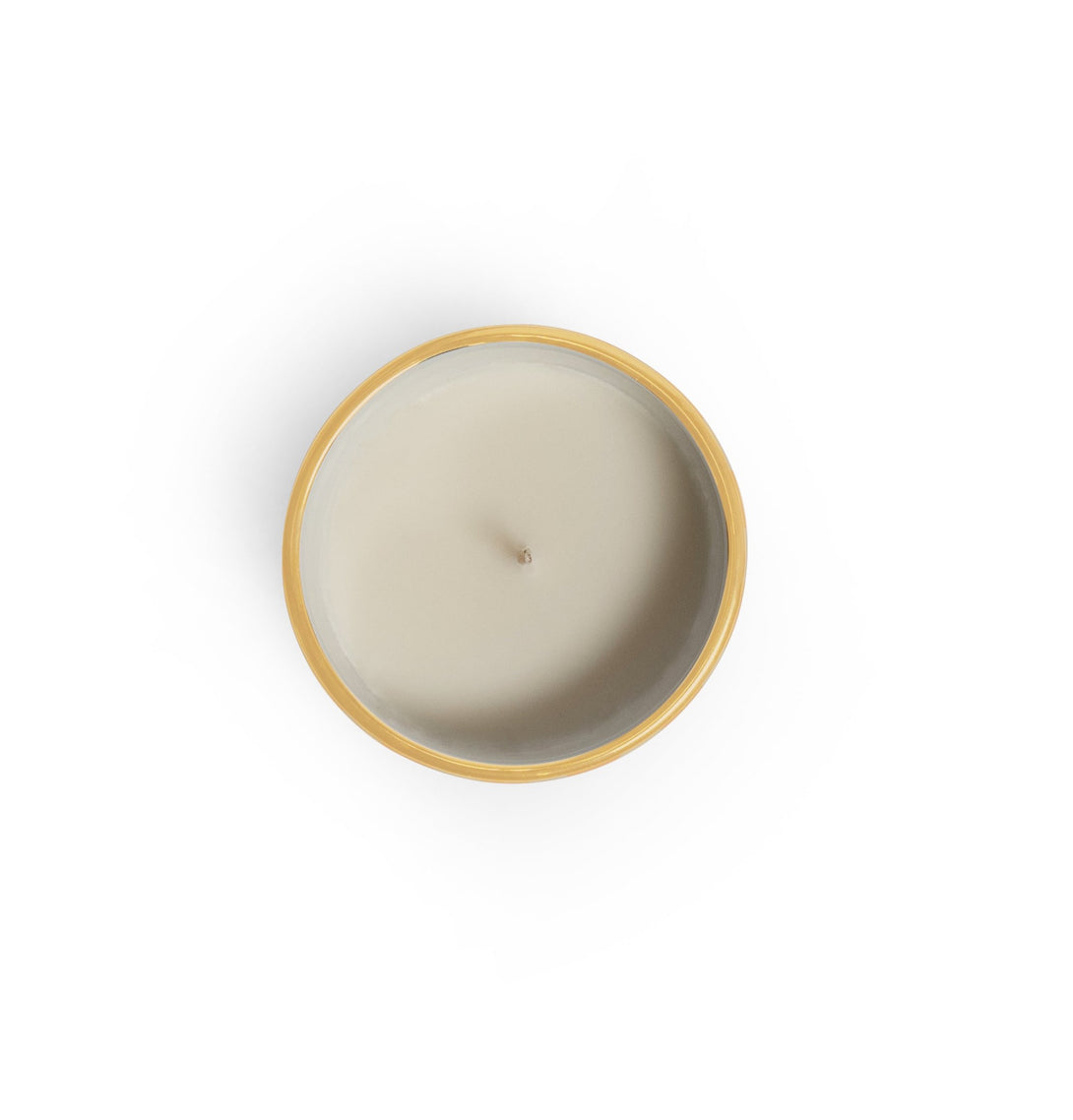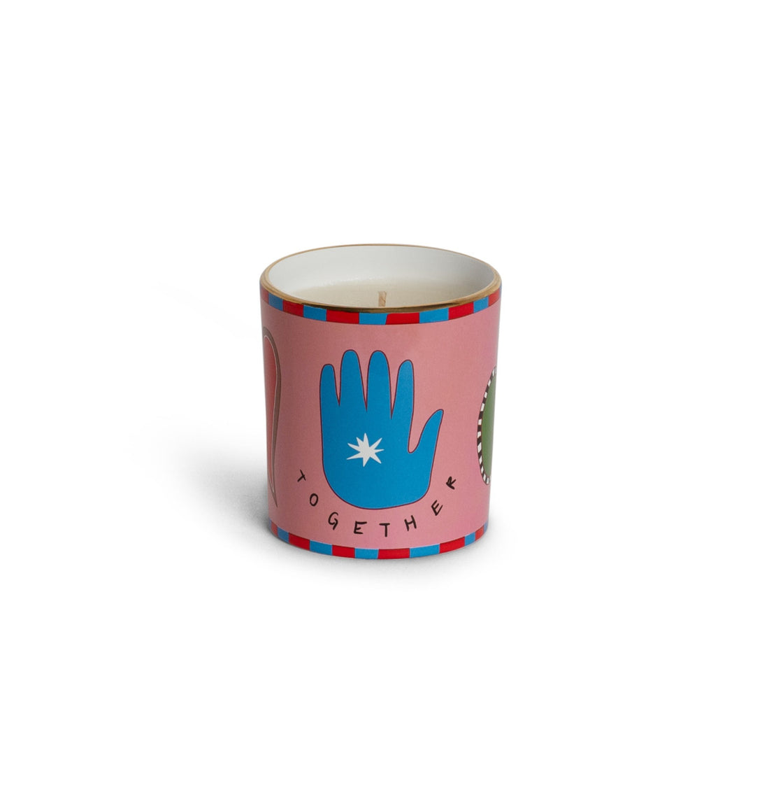 MATERIALS: Scented candle, porcelain bowl with pink decals.