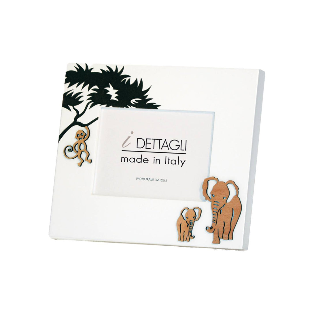 Kenya picture frame by I Dettagli. A safari-themed frame, perfect for children's bedrooms or playrooms. The animal decoration on the frame are made in laser-cut wood, the signature of I Dettagli.