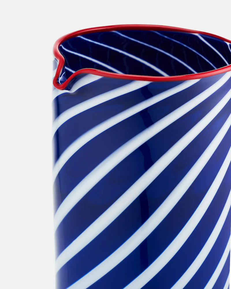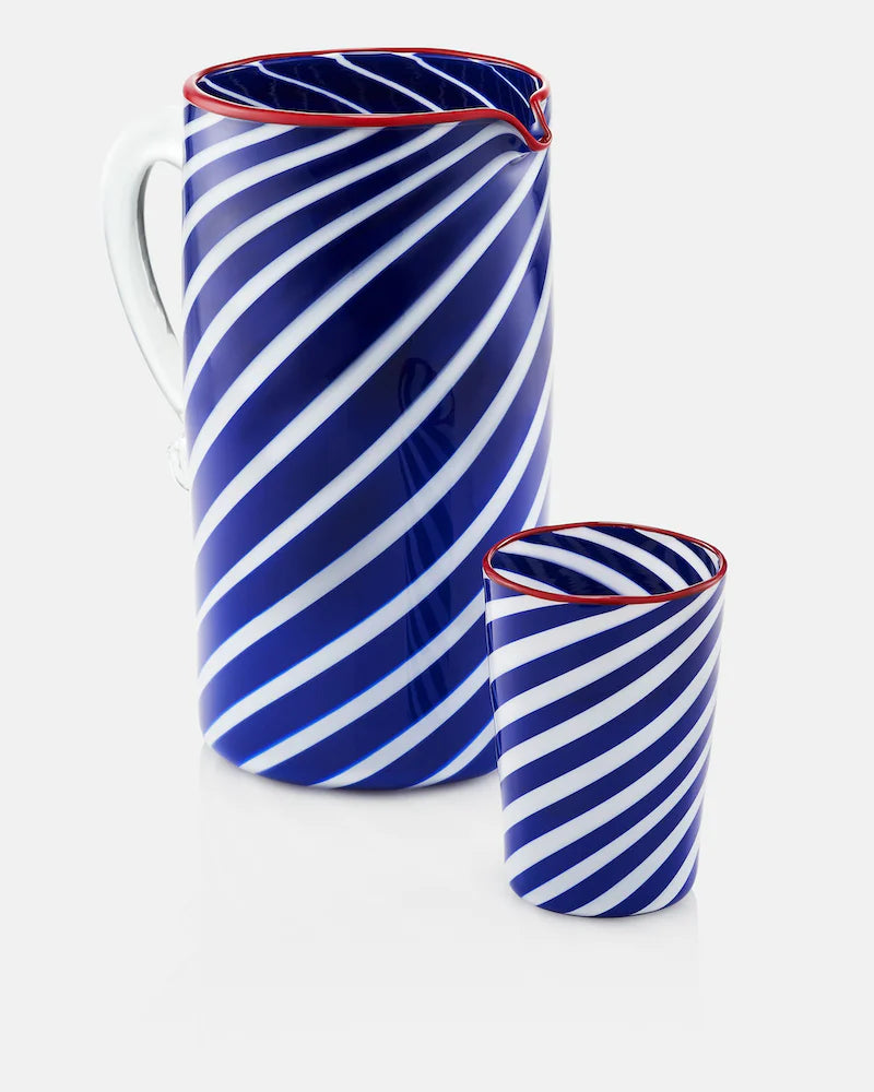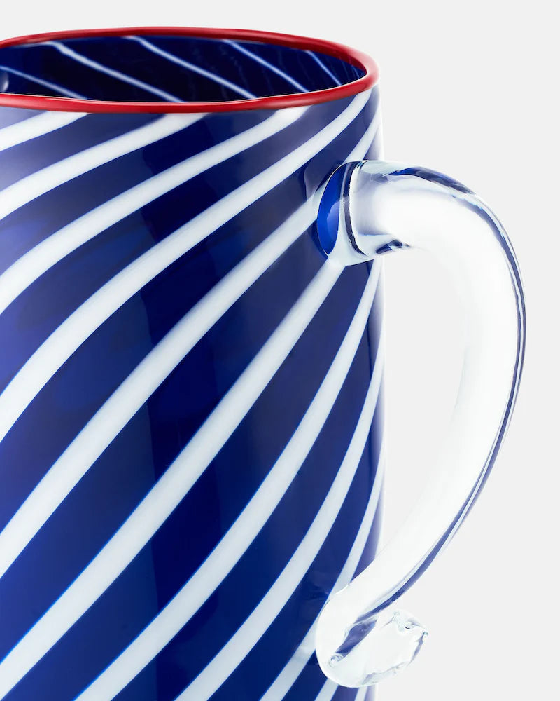Give your tablescape a refresh with Aquazzura Casa's Lido Jug. Crafted from handblown Murano glass in shades of red, white and blue, the piece will decorate a casual garden party or a sophisticated dining experience. Let it be a vessel for freshly picked flowers when you are not serving refreshments.