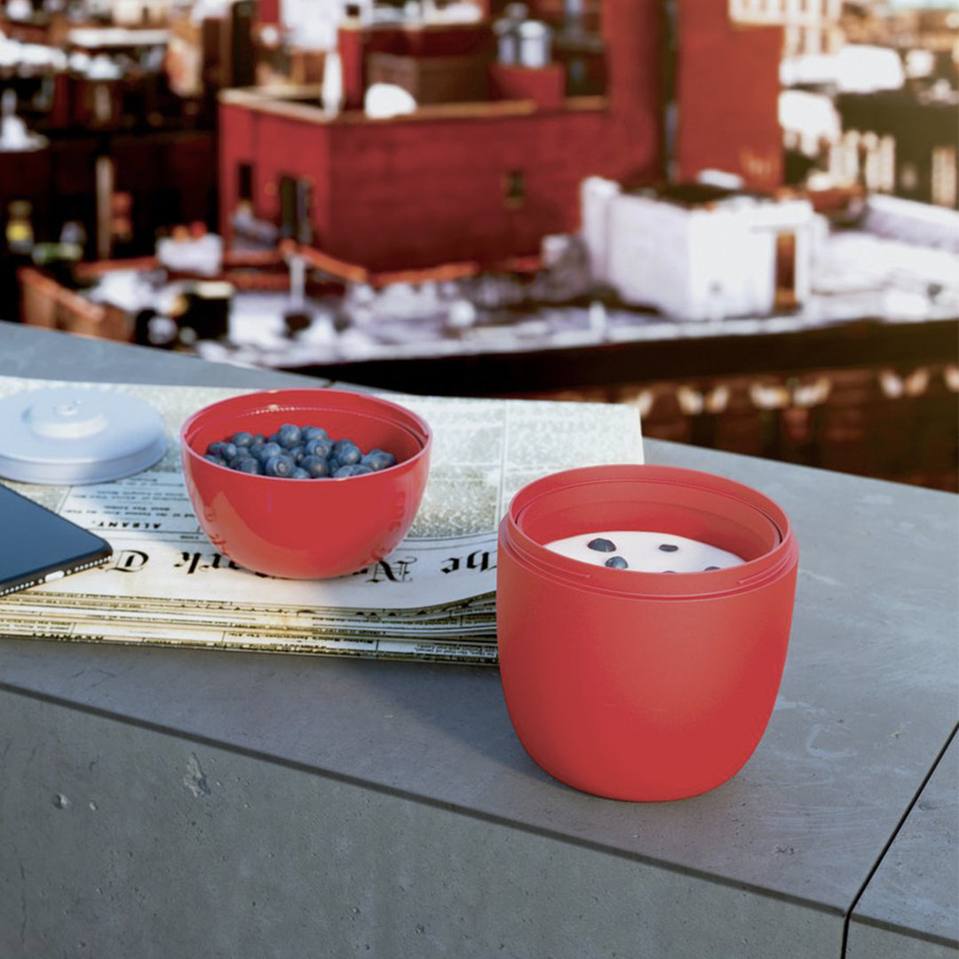 Food à porter is a collection of food and beverage containers that allows you to carry your lunch with you to eat it wherever you want. Spacious, compact and extremely versatile thanks to the presence of two lids and the possibility to insert the cooling element, the Lunch pot can be used to carry and consume a variety of foods: salads, yoghurt and cereals, pasta, soups.. .The ideal accessory for lunch in the office, at school or outdoors.