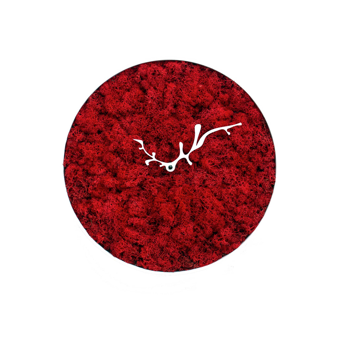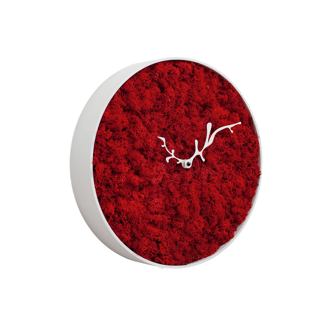 Mossy Wall Clock by Progetti. Mossy is a fun wall clock created with real stabilized moss. This clock is meant for all nature lovers who can't live without it, even inside their own homes. Simple in shape but sure to make an impact, Mossy is available in various colours. The hands have a unique shape that brings to mind a lichen branch.