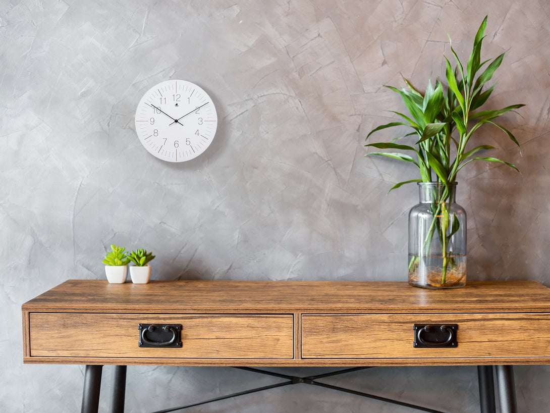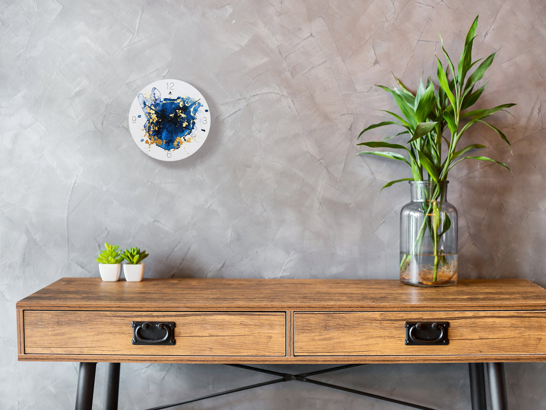 Orolo_Gino is a wall clock born to be small, only 24 cm in diameter. The graphics that make up the dial had to be its real strength. In the end, it turned out so well that we decided to make an identical version of it, only larger at 33 centimeters in diameter. Two different dials are available: one more colorful which also uses gold leaf applied on a blue-toned spot, the other more graphic but both very elegant. Elegance underlined by the copy of extremely slender hands that integrate perfectly. Made of wood and painted with non-toxic paints. German made battery operated quartz movement.