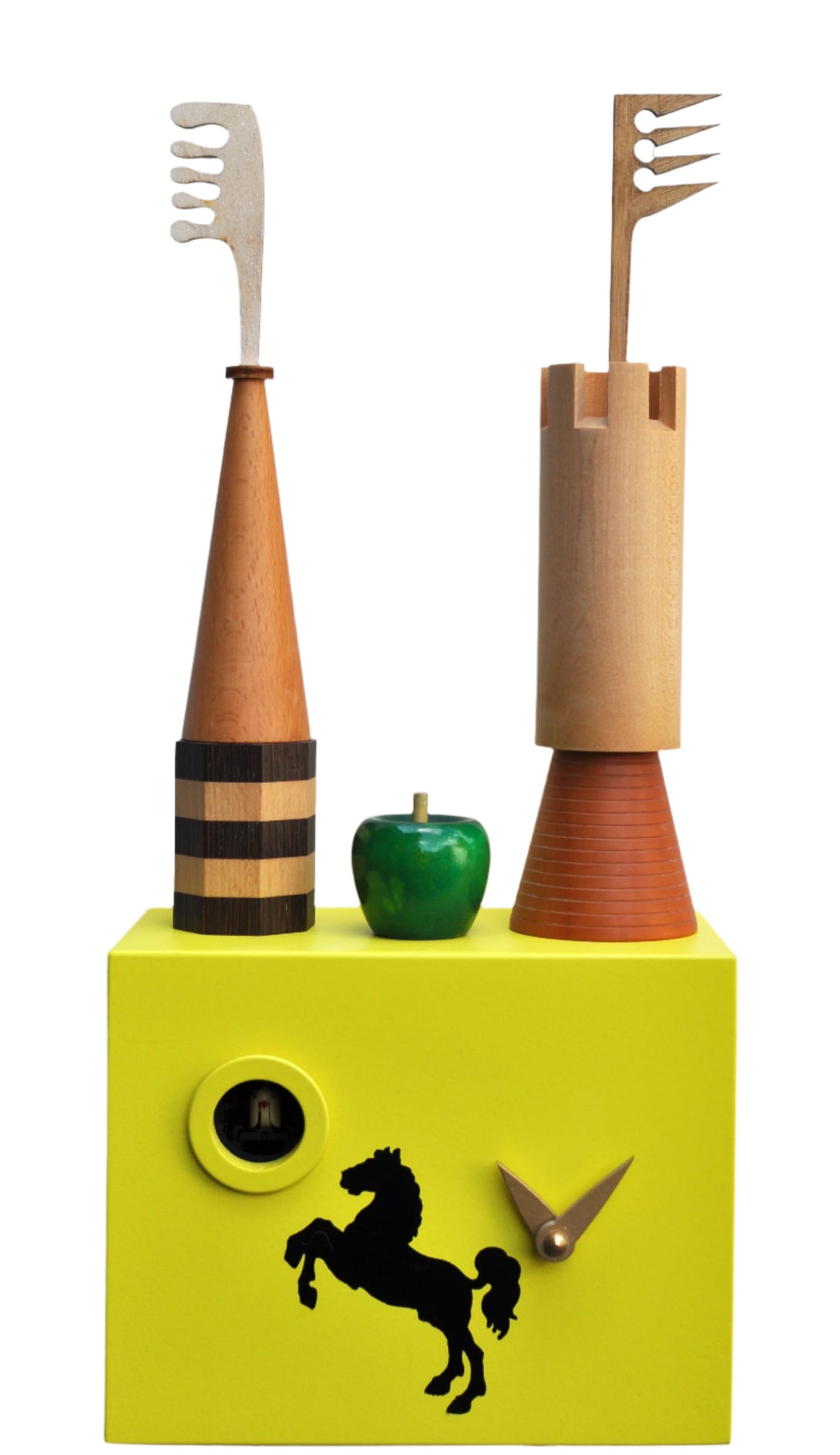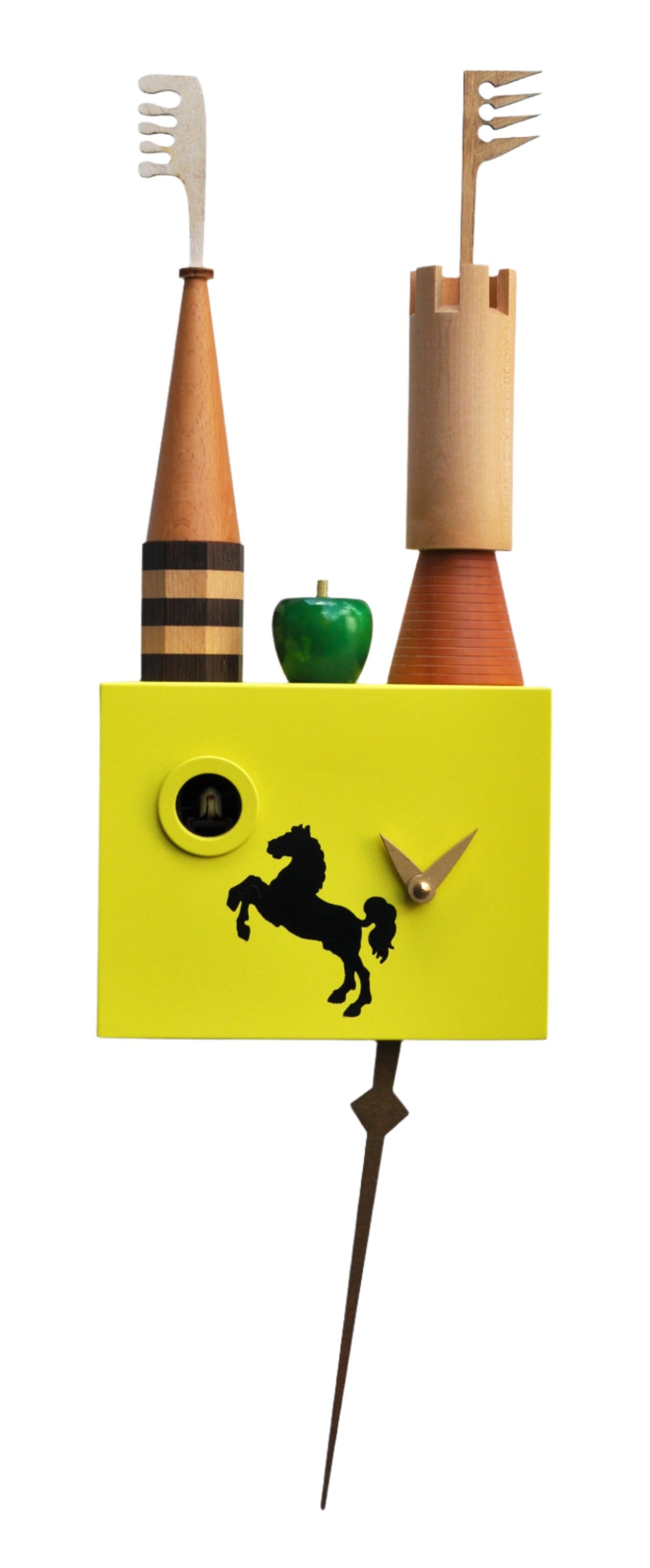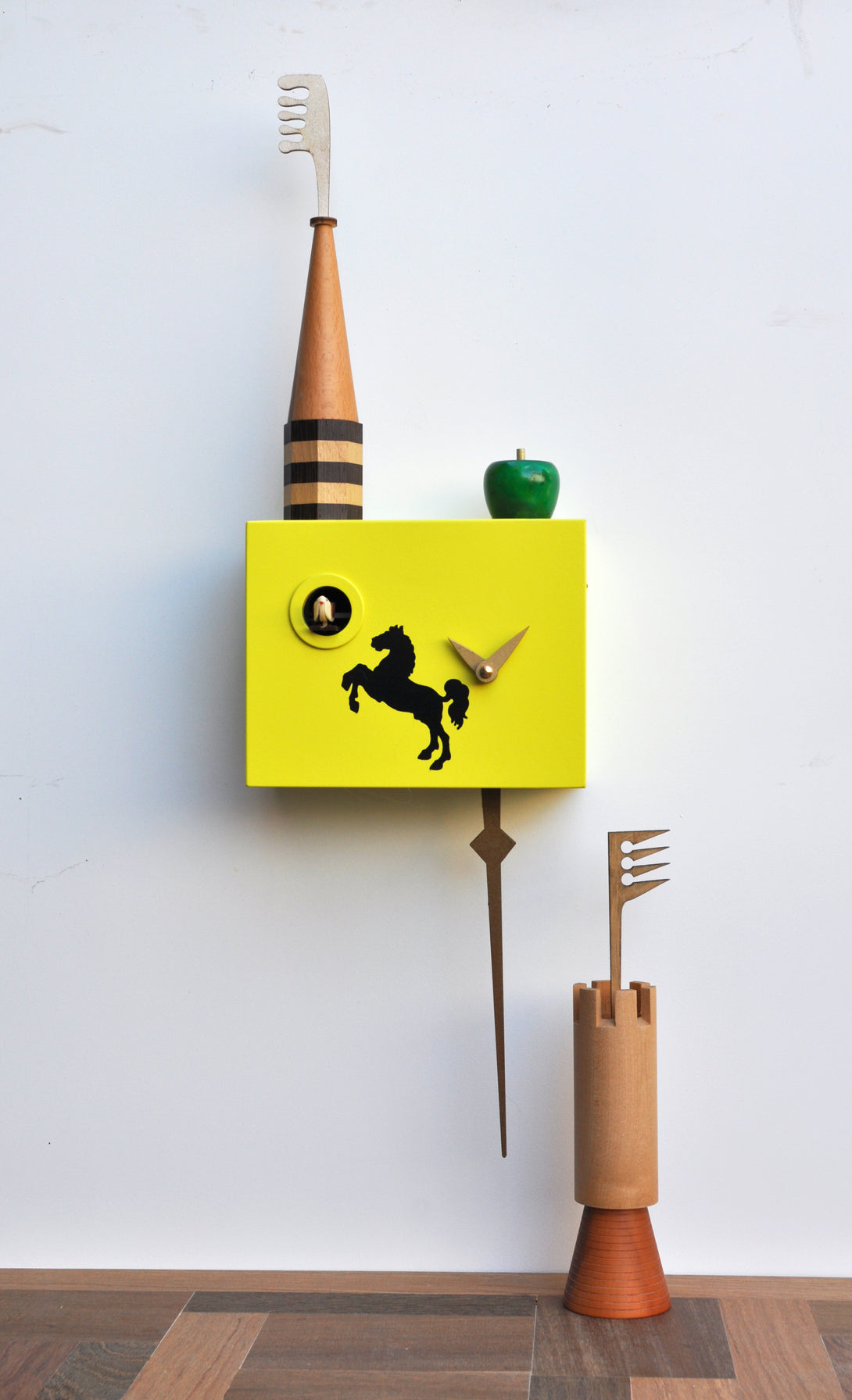 The peculiarity of each cuckoo is to be made with elements already used by the manufacturer in the production of the most diverse objects, real ready-made in some cases finished and painted by hand, which magically combine with magnets, allowing art and design lovers to create their own personal artistic composition.