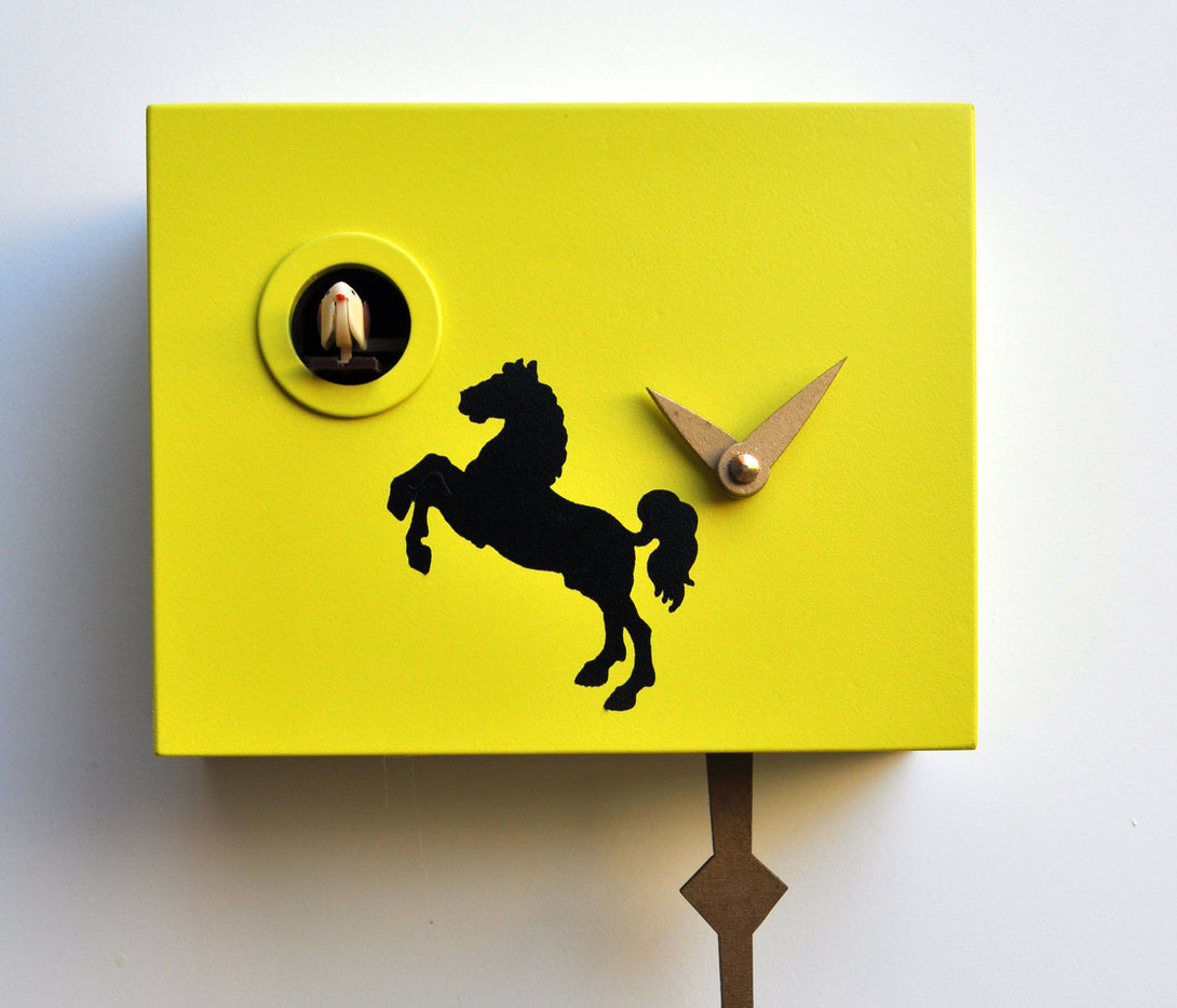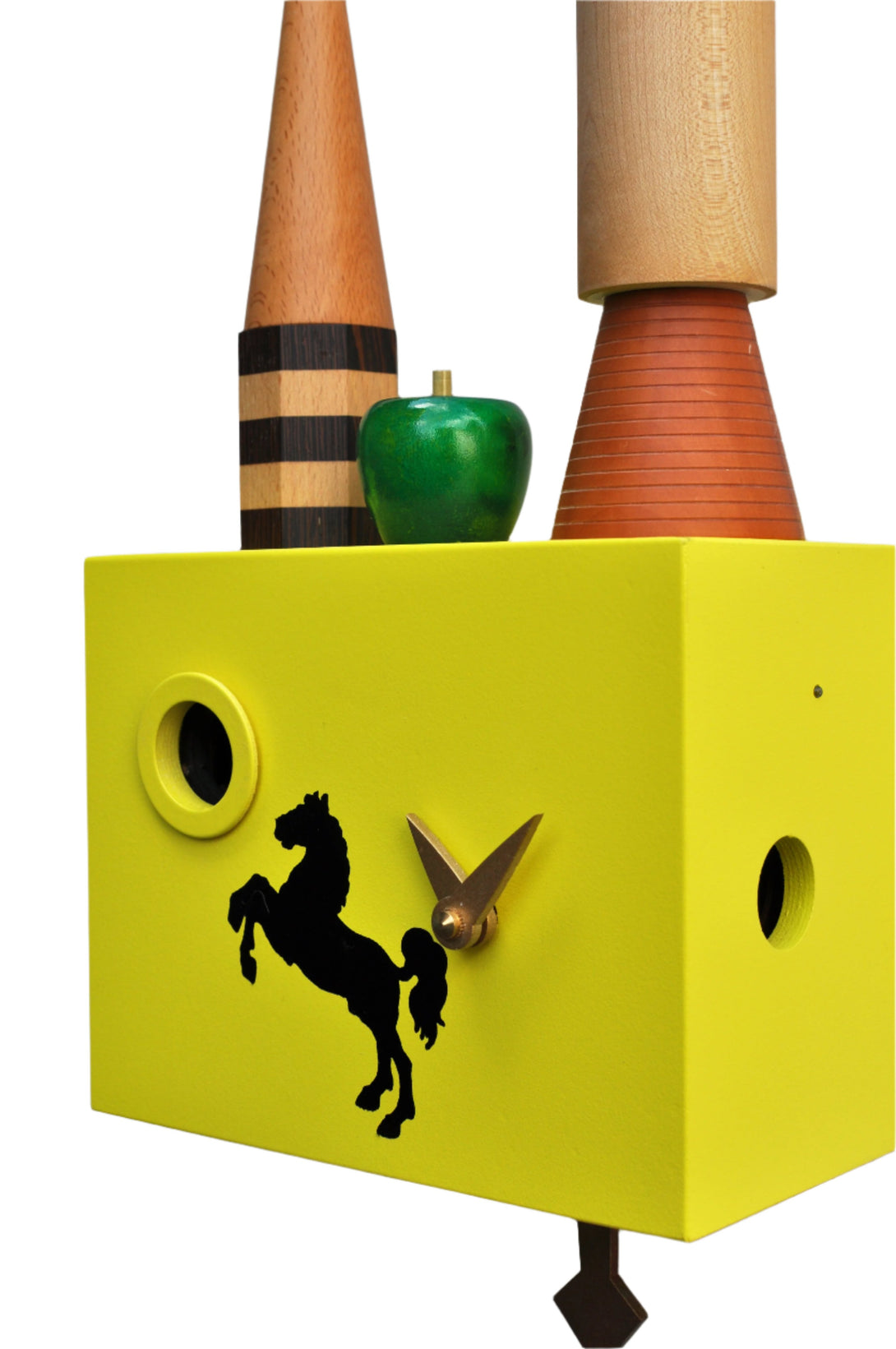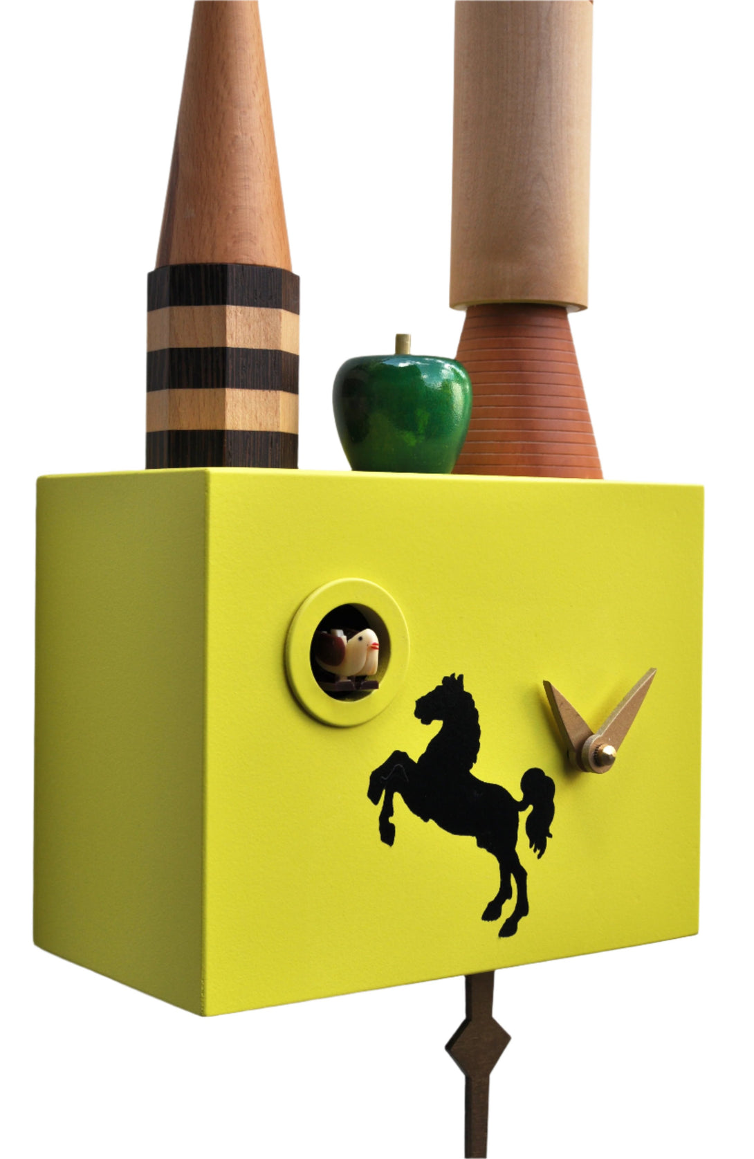 The peculiarity of each cuckoo is to be made with elements already used by the manufacturer in the production of the most diverse objects, real ready-made in some cases finished and painted by hand, which magically combine with magnets, allowing art and design lovers to create their own personal artistic composition.