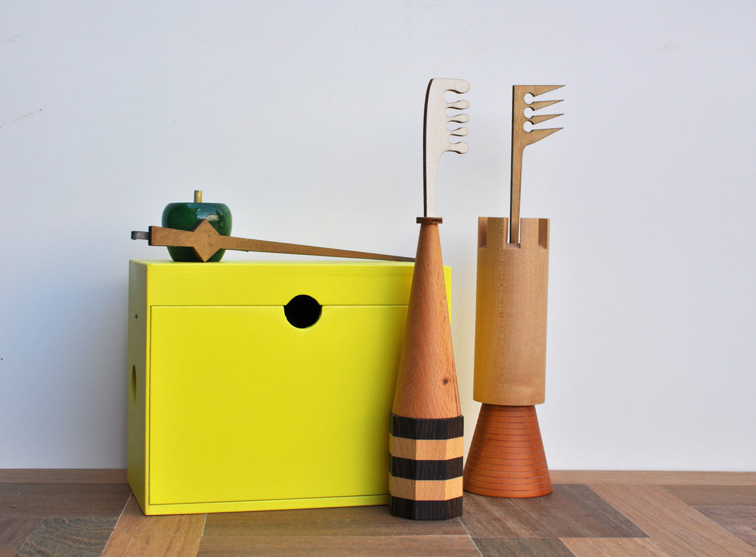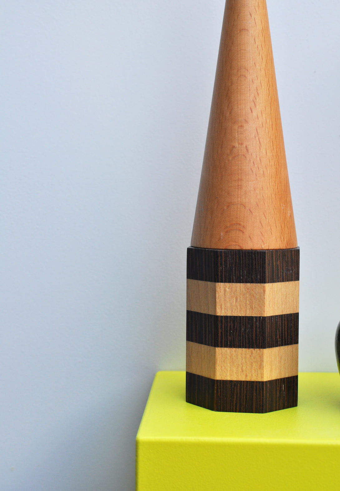 MATERIALS: Made of lacquered MDF and solid maple, beech, pear and wenge. The various parts are held by magnets and can be positioned as desired