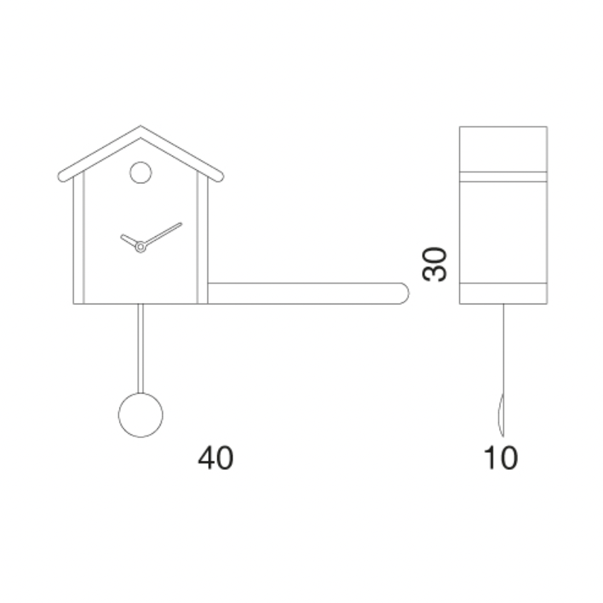 The choice of "soft" shapes and "warm" materials like wood make My House a clock that everyone would like to have to accompany us in the passing of time. The classic house, designed in a modern way by the famous Korean designers Park Woncheol & Shin Dong Rak, host the cuckoo and is available in two versions. In the black version,the "front" of the house is in light wood, in the other case it is made entirely of wood. The little house is flanked by a shelf that completes, in an innovative way, the design of a clock suitable for all environments, even those more classic. Produced from materials that are environmentally friendly and painted with non-toxic paints. The battery operated cuckoo movement has a light sensor that automatically turns off the cuckoo sound in the absence of light. A push button allows you to adjust the intensity of sound or turn it off altogether.