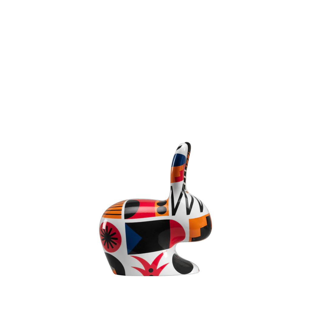 Rabbit XS Edition Oggian White. Qeeboo launches a new version of its most iconic products decorated by artists, designers or stylists. The first ones of this new series are the ones decorated with patterns specifically created by Marco Oggian with its playful character, joyful and colourful mood.