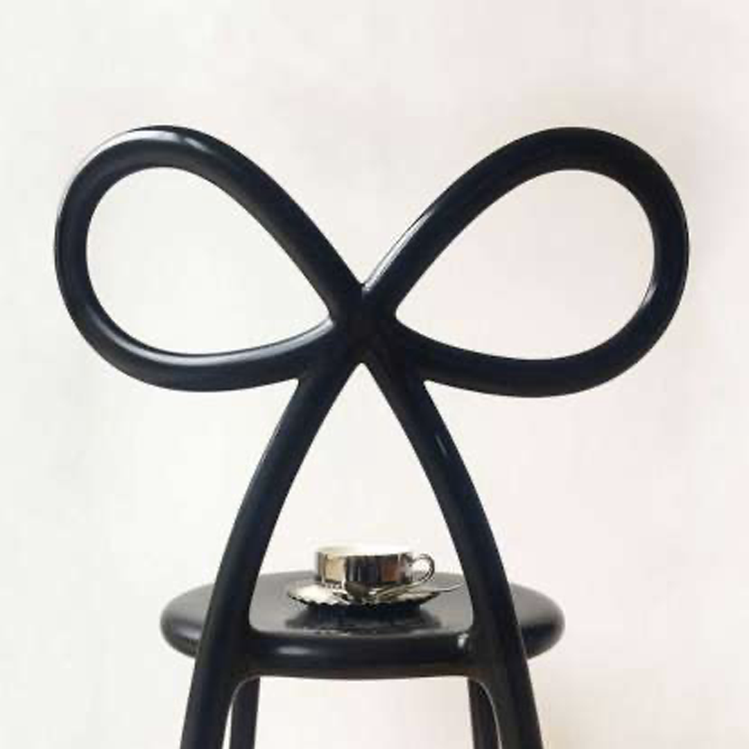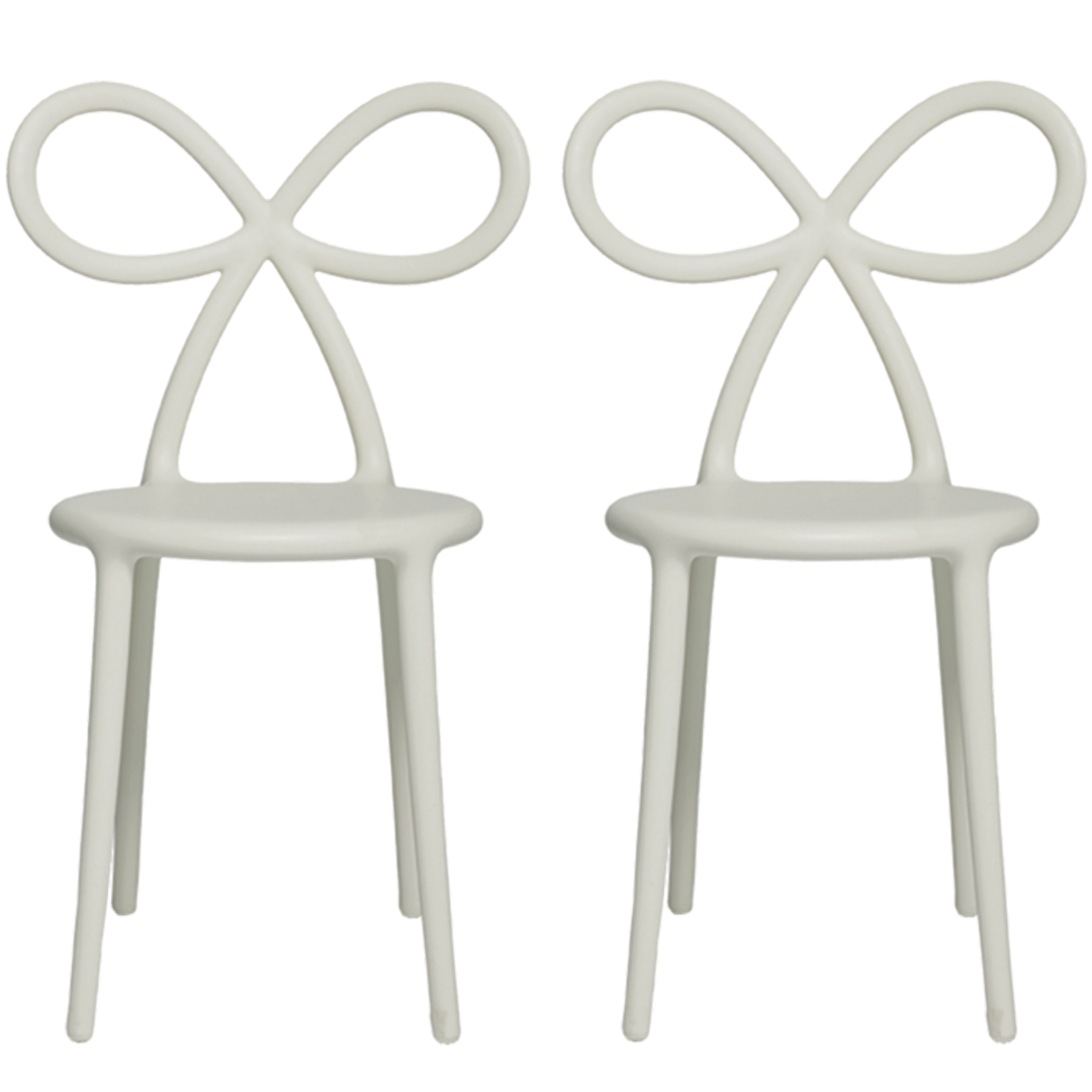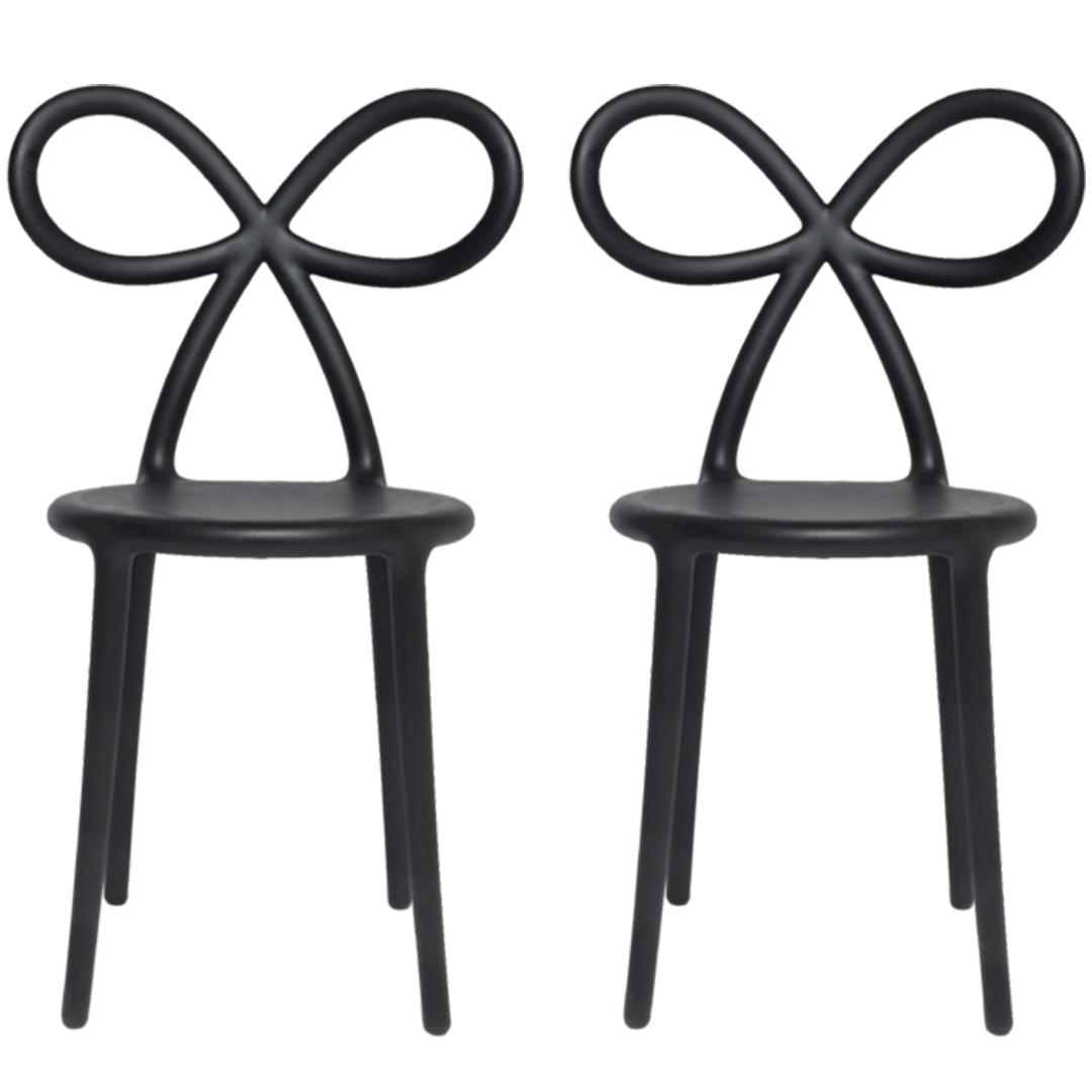 Ribbon chair by Qeeboo, evoking an extraordinary romantic world, is the feminine chair par excellence. A successful iconic chair, with a strong identity, characterized by a ribbon designed as a backrest. The ribbon, a lively symbol of gift and celebration, is translated by the designer with soft, light and essential lines. Coming in a set of two and in a metal version for an extra glam kick!