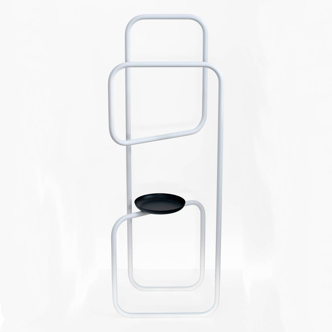 Do not however be deceived by its apparent simplicity, Rulo is actually quite complicated to produce.  It is made from a single 6-metre long continuous metal tube. There is a small tray in the centre for emptying pocket contents into. Painted with two coats of high quality paint, it can be used in any elegant environment.