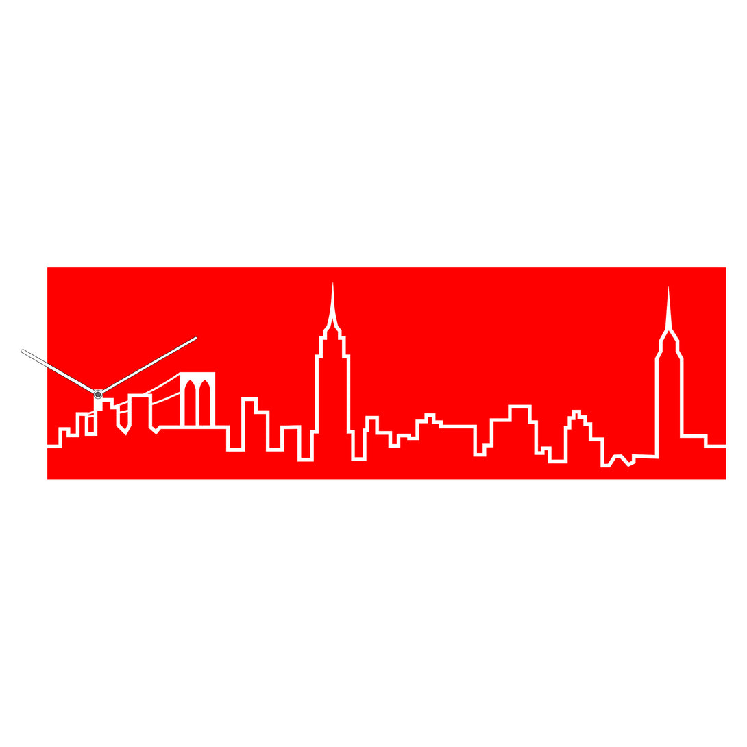 Skyline is made of wood and is varnished with non-toxic paint, it is battery powered with a quartz mechanism.