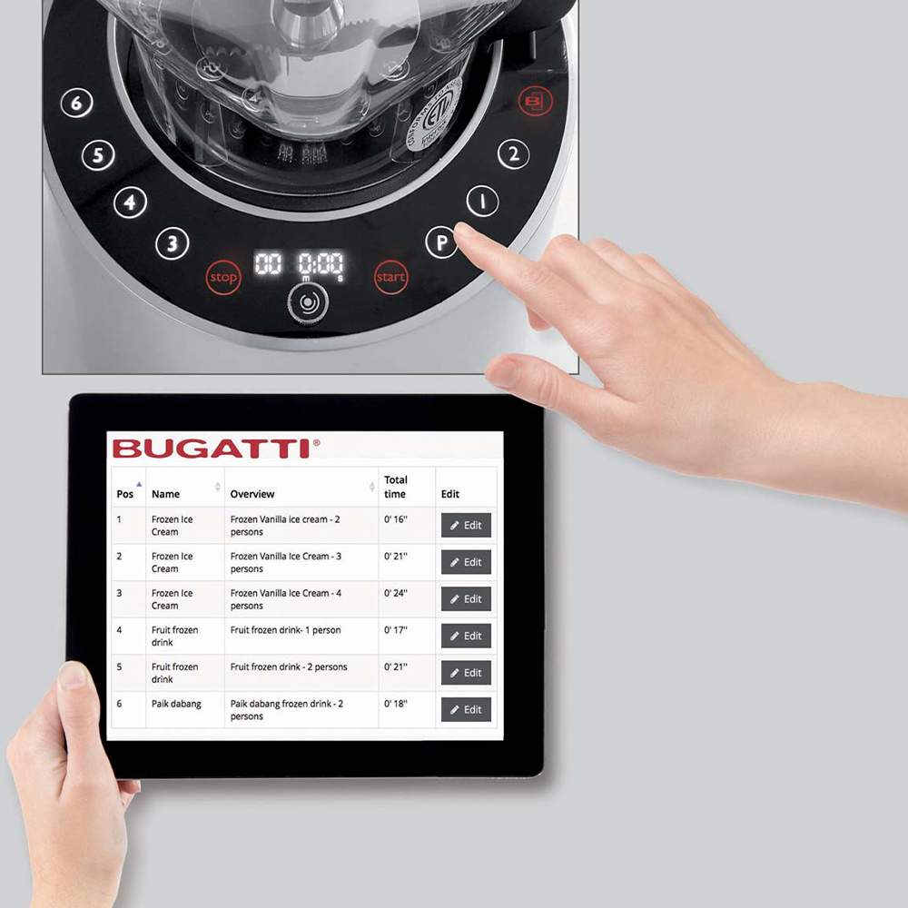 60 customizable cycles in an easy and fast way directly into the reserved area on www.bchef.com. Immediate download into the blender from App Bchef: from 1 to 6 programs directly on the display and from 7 to 60 recallable from the control panel.