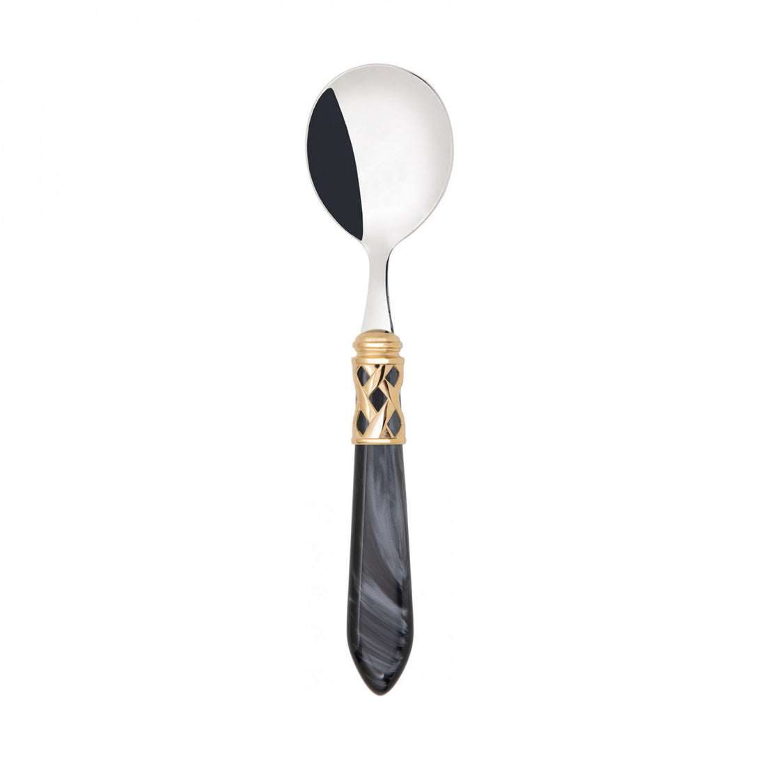 The coloured Aladdin Gold Ring cutlery range was created to bring magic and performance to your table. Each individual piece is made with meticulous care. Made of 18/10 stainless steel, each features an elegant acrylic handle combined with a refined braided ring with a gold-plated finish.