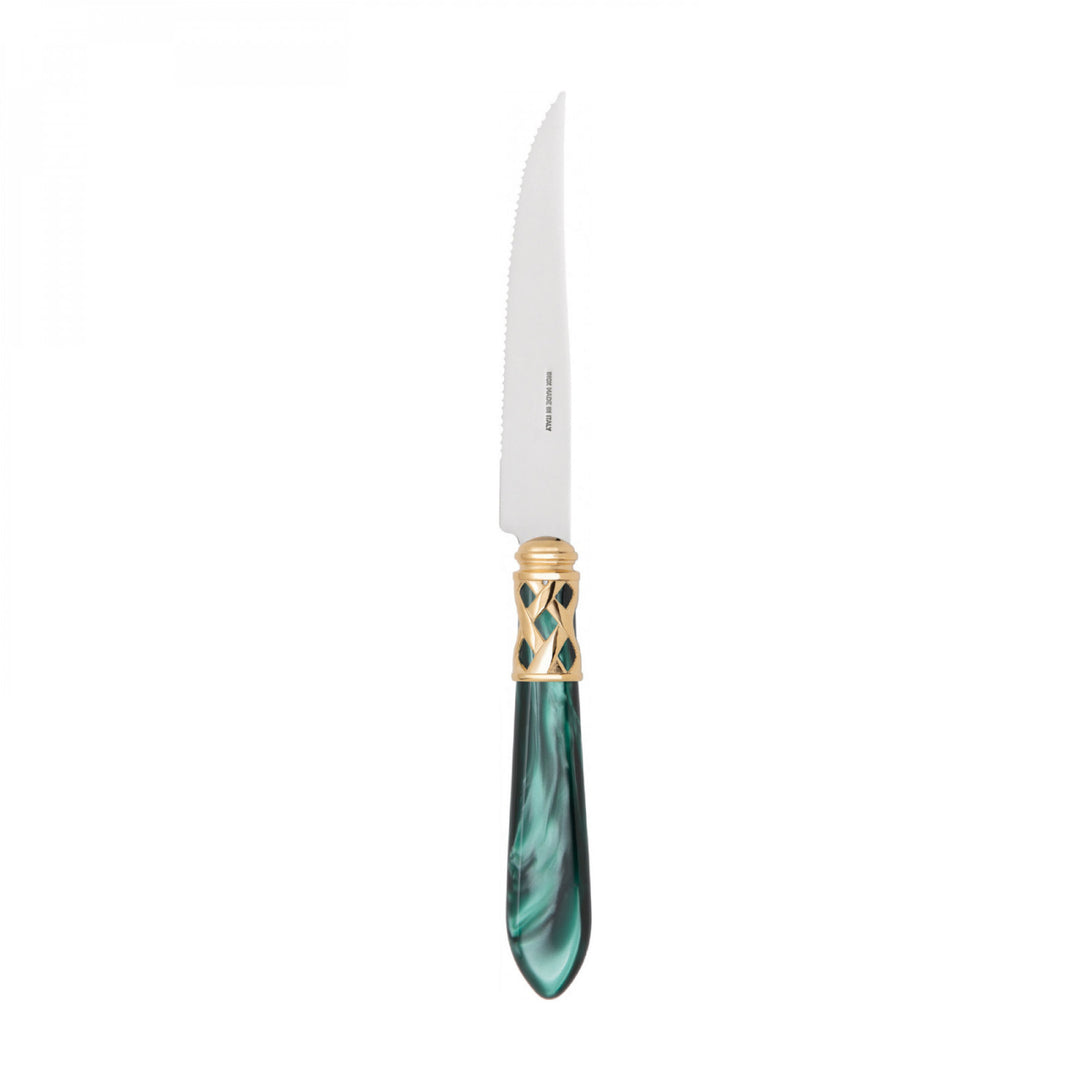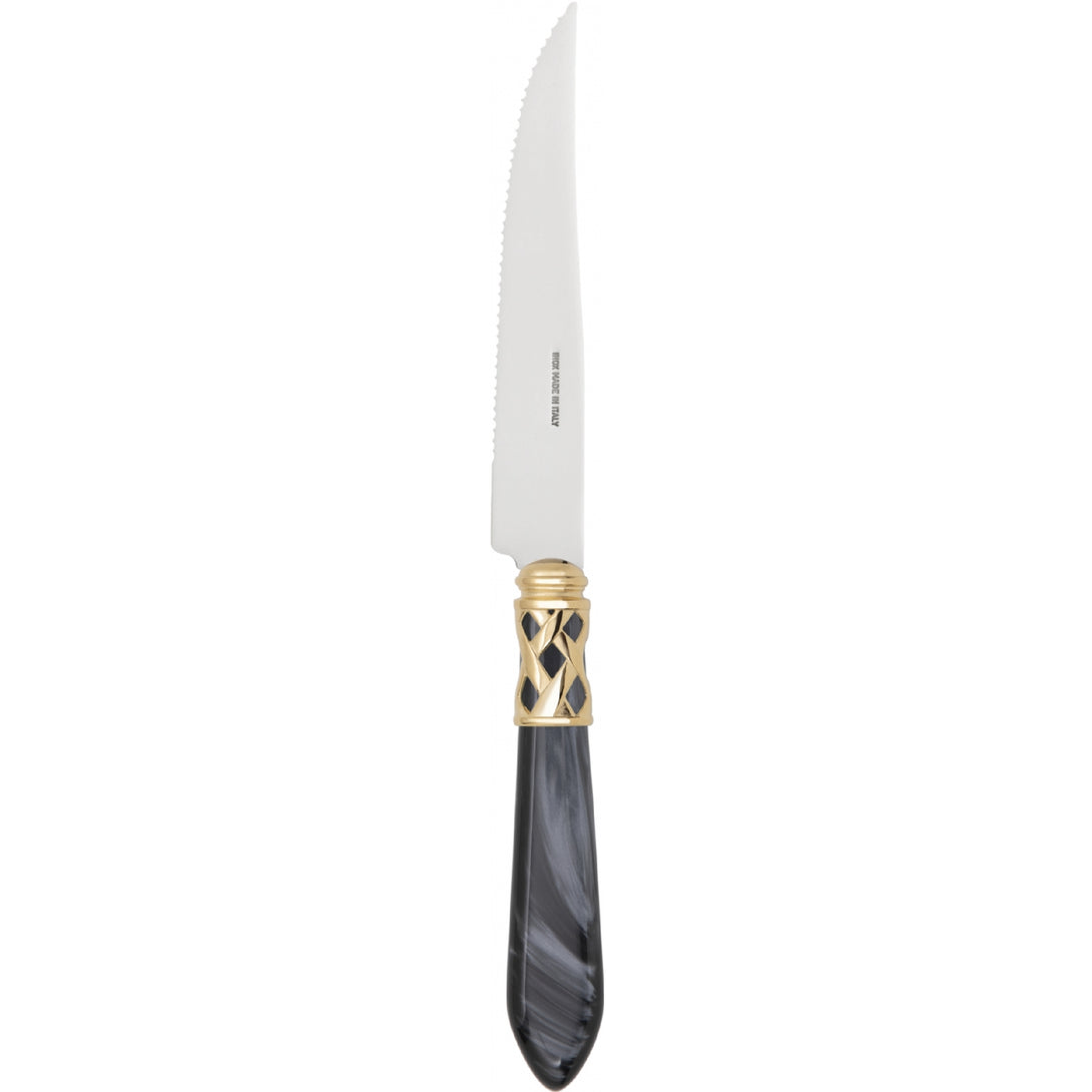 The coloured Aladdin Gold Ring cutlery range was created to bring magic and performance to your table. Each individual piece is made with meticulous care. Made of 18/10 stainless steel, each features an elegant acrylic handle combined with a refined braided ring with a gold-plated finish.