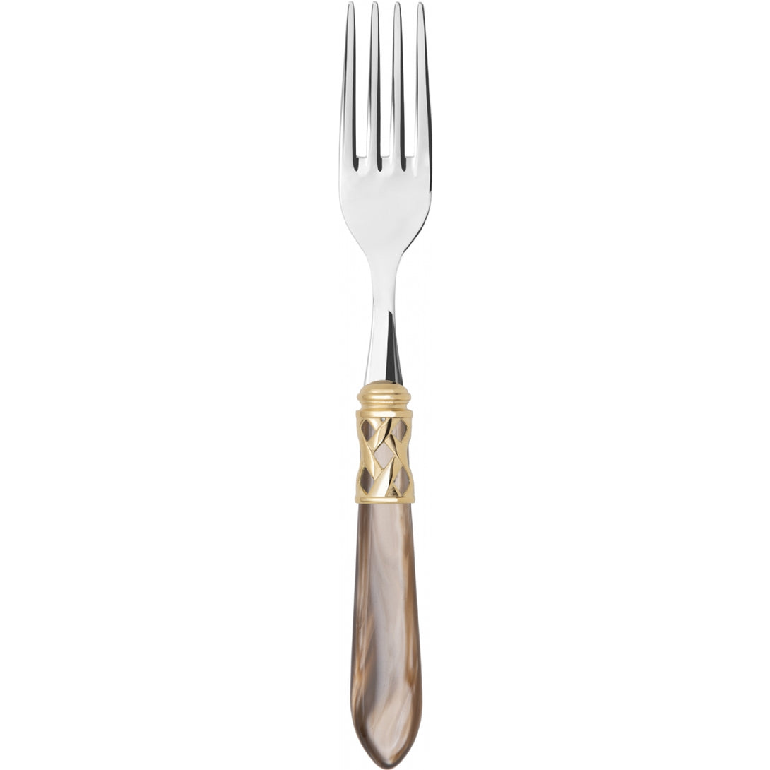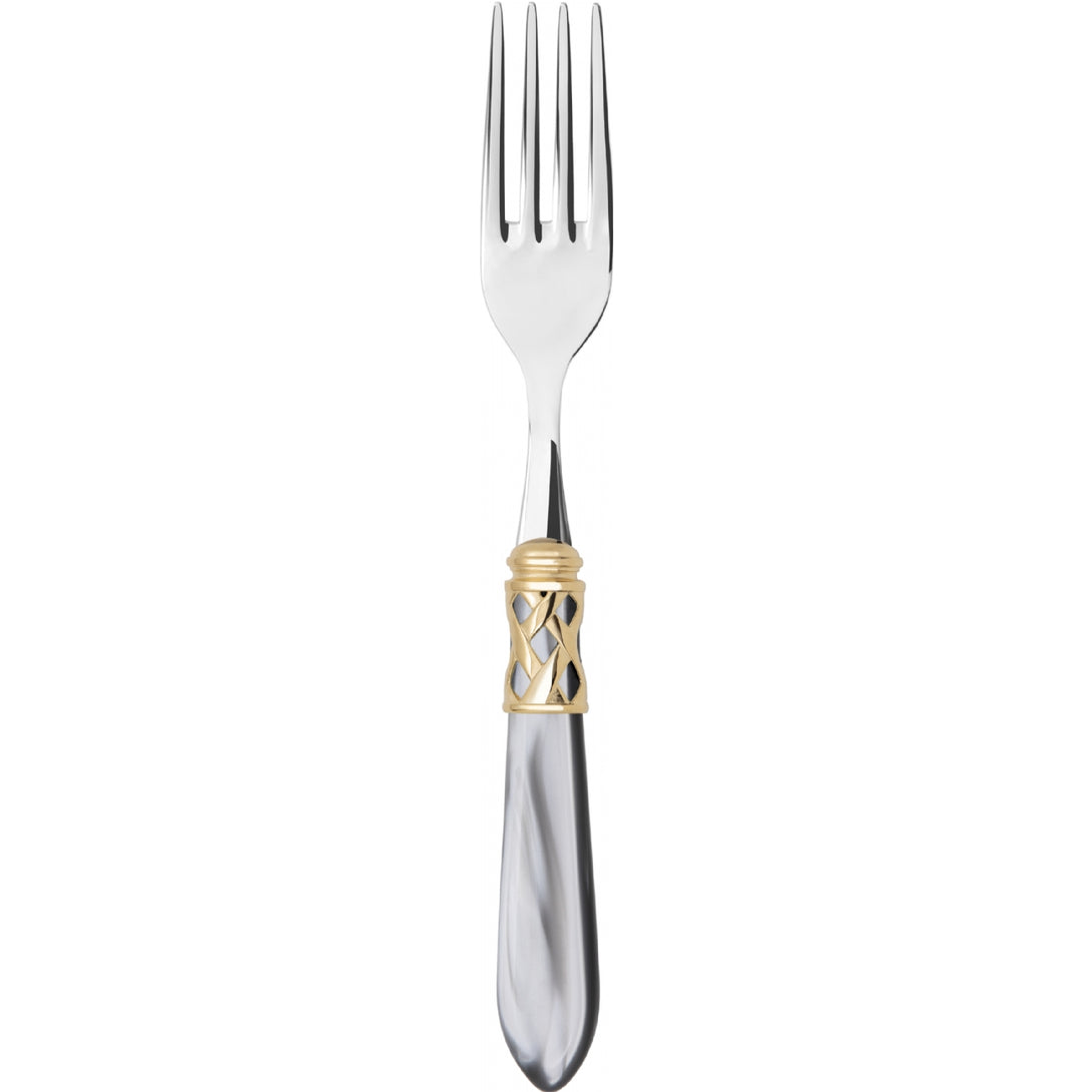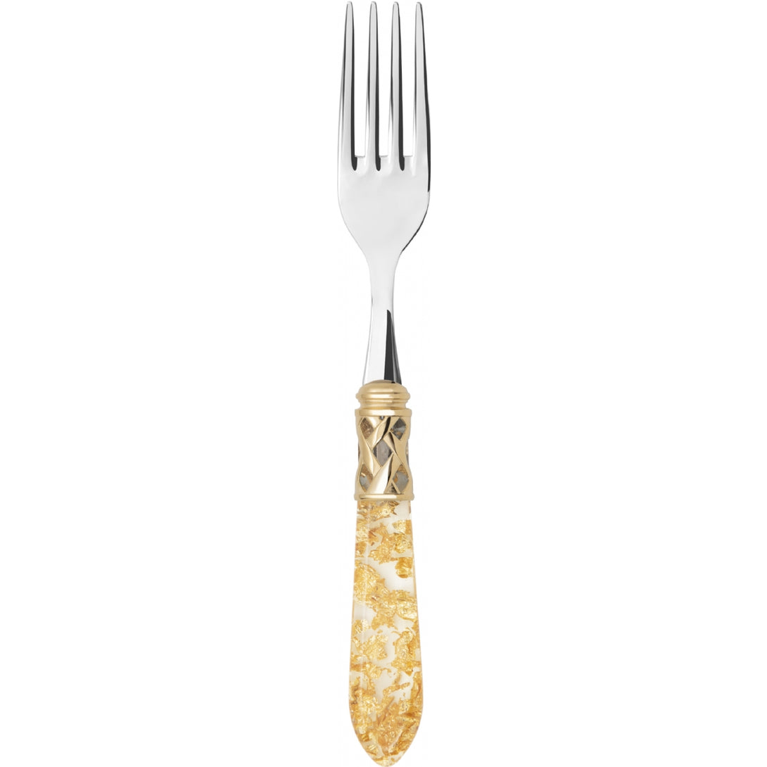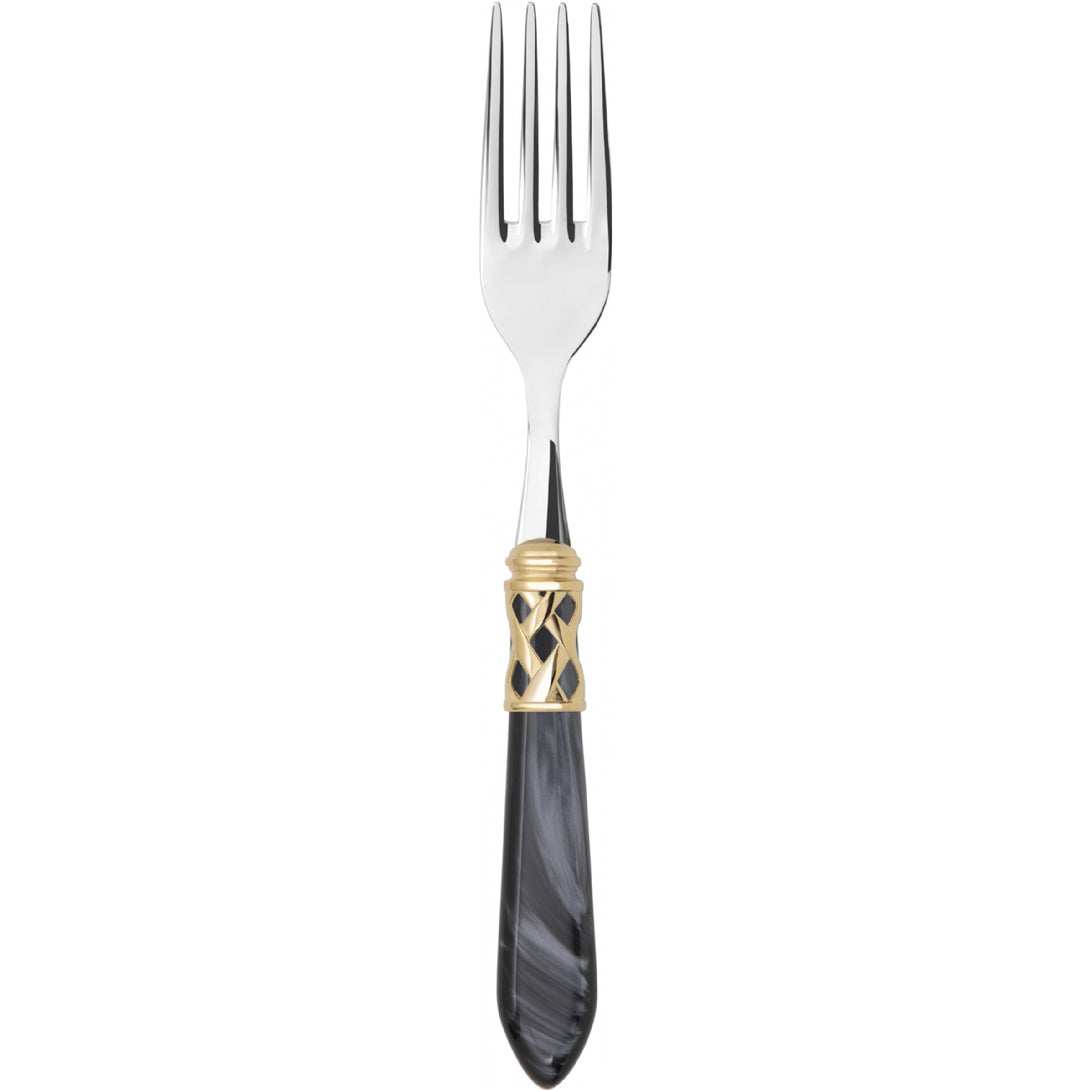 The coloured Aladdin Gold Ring cutlery range was created to bring magic and performance to your table. Each individual piece is made with meticulous care. Made of 18/10 stainless steel, each features an elegant acrylic handle combined with a refined braided ring with a gold-plated finish.