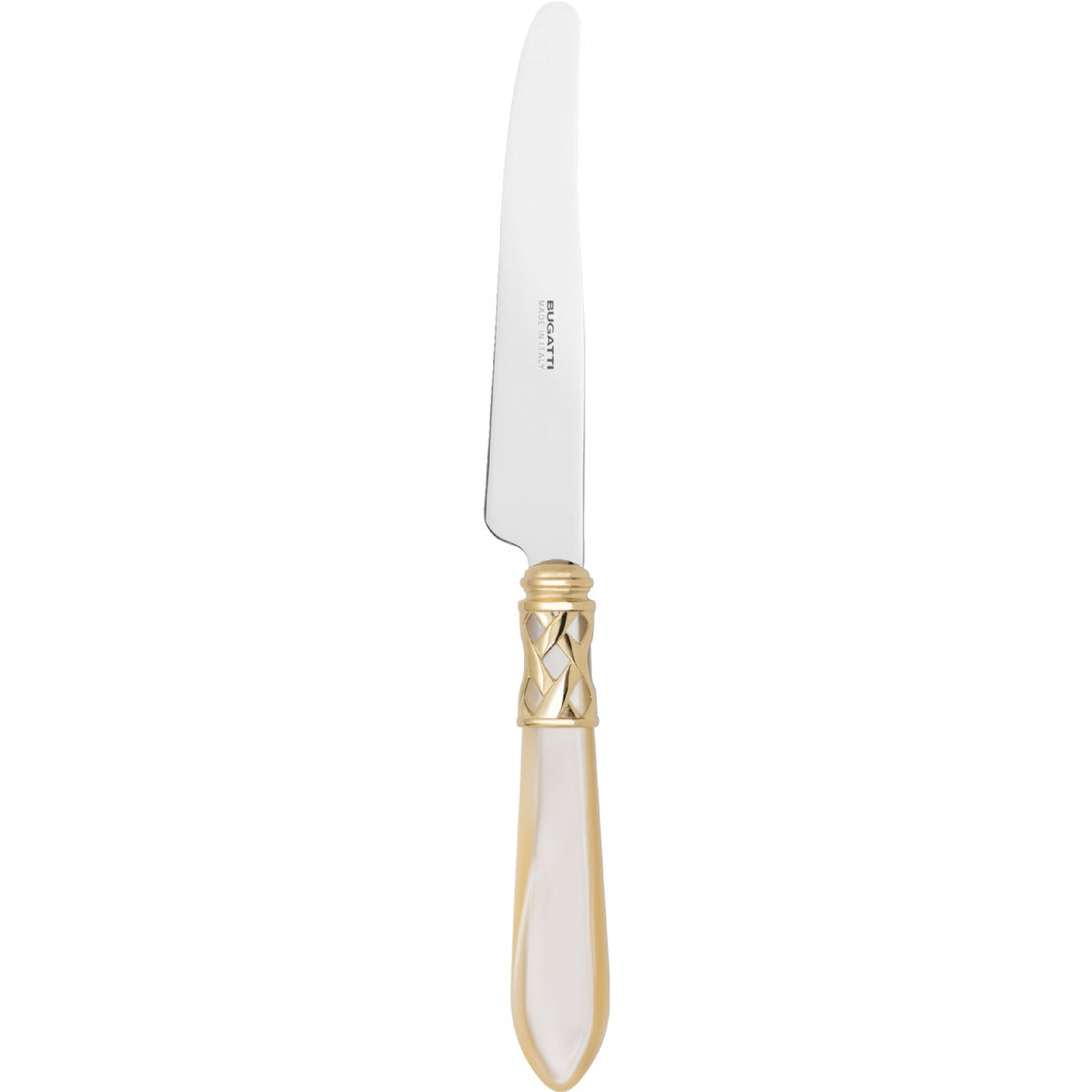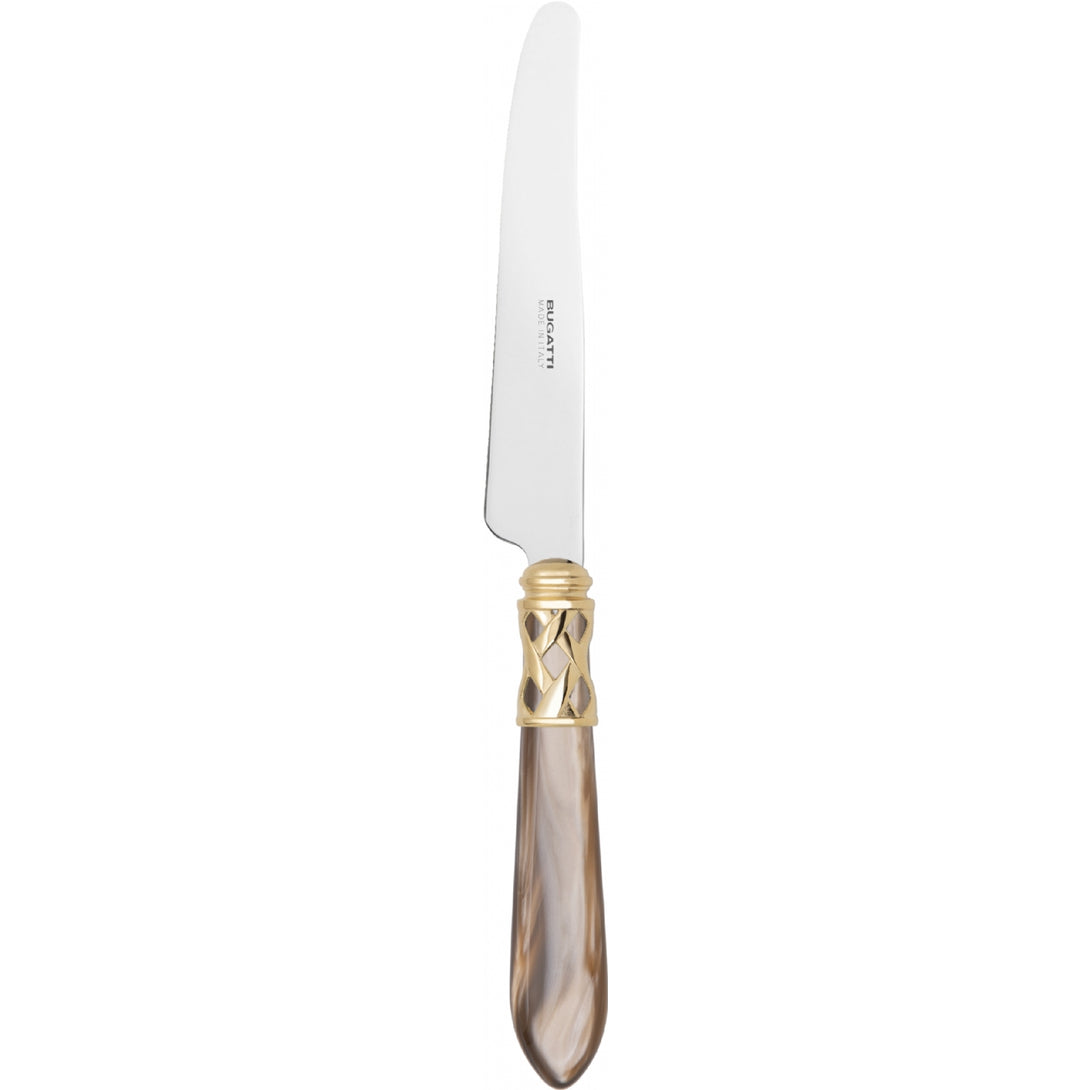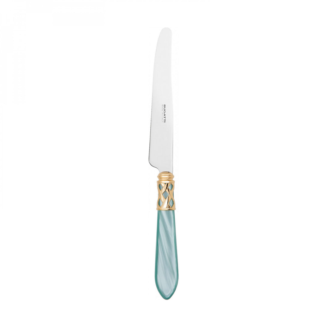 The coloured Aladdin Gold Ring cutlery range was created to bring magic and performance to your table. Each individual piece is made with meticulous care. Made of 18/10 stainless steel, each features an elegant acrylic handle combined with a refined braided ring with a gold-plated finish.