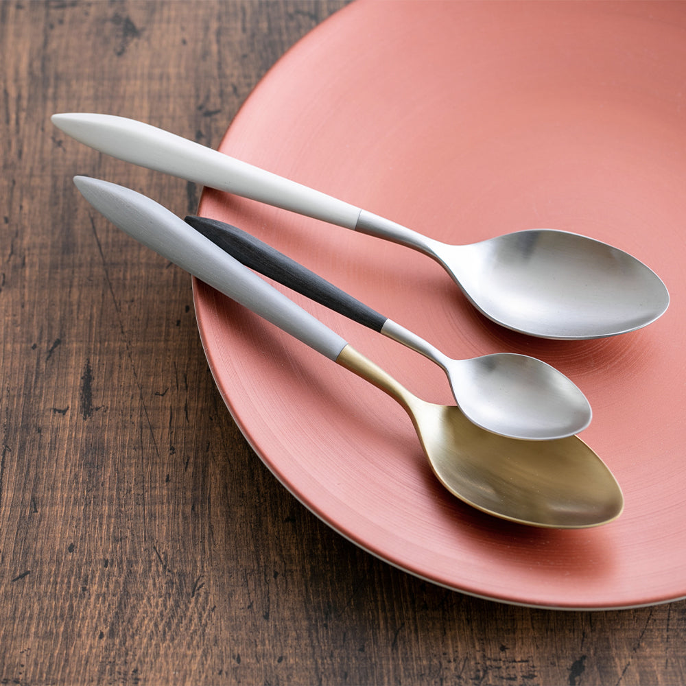 Add luxury to the table with this refined and elegant cutlery collection characterized by a slender and elongated shape and timeless design. Made of forged 18/10 stainless steel with satin finish and resin handle, Ares is ideal for an important and contemporary table.