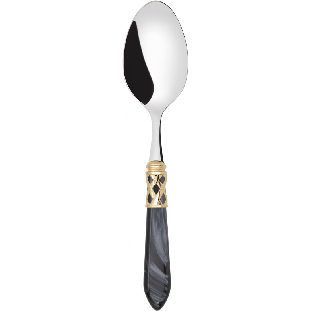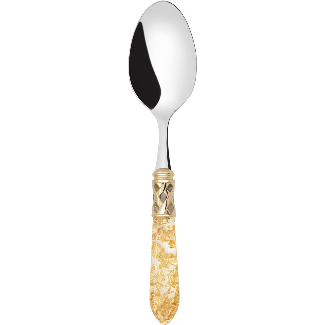 The coloured Aladdin Gold Ring cutlery range was created to bring magic and performance to your table. Each individual piece is made with meticulous care. Made of 18/10 stainless steel, each features an elegant acrylic handle combined with a refined braided ring with a gold-plated finish.