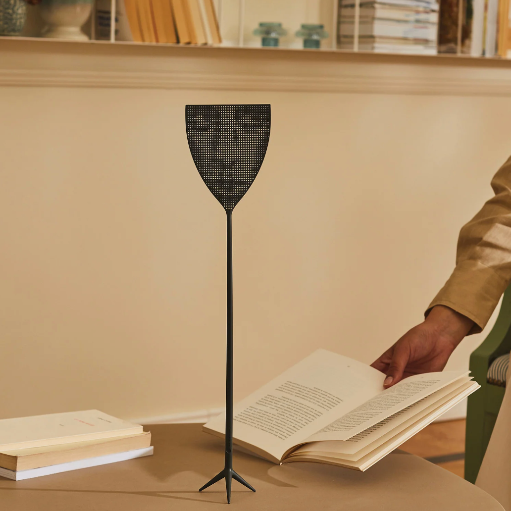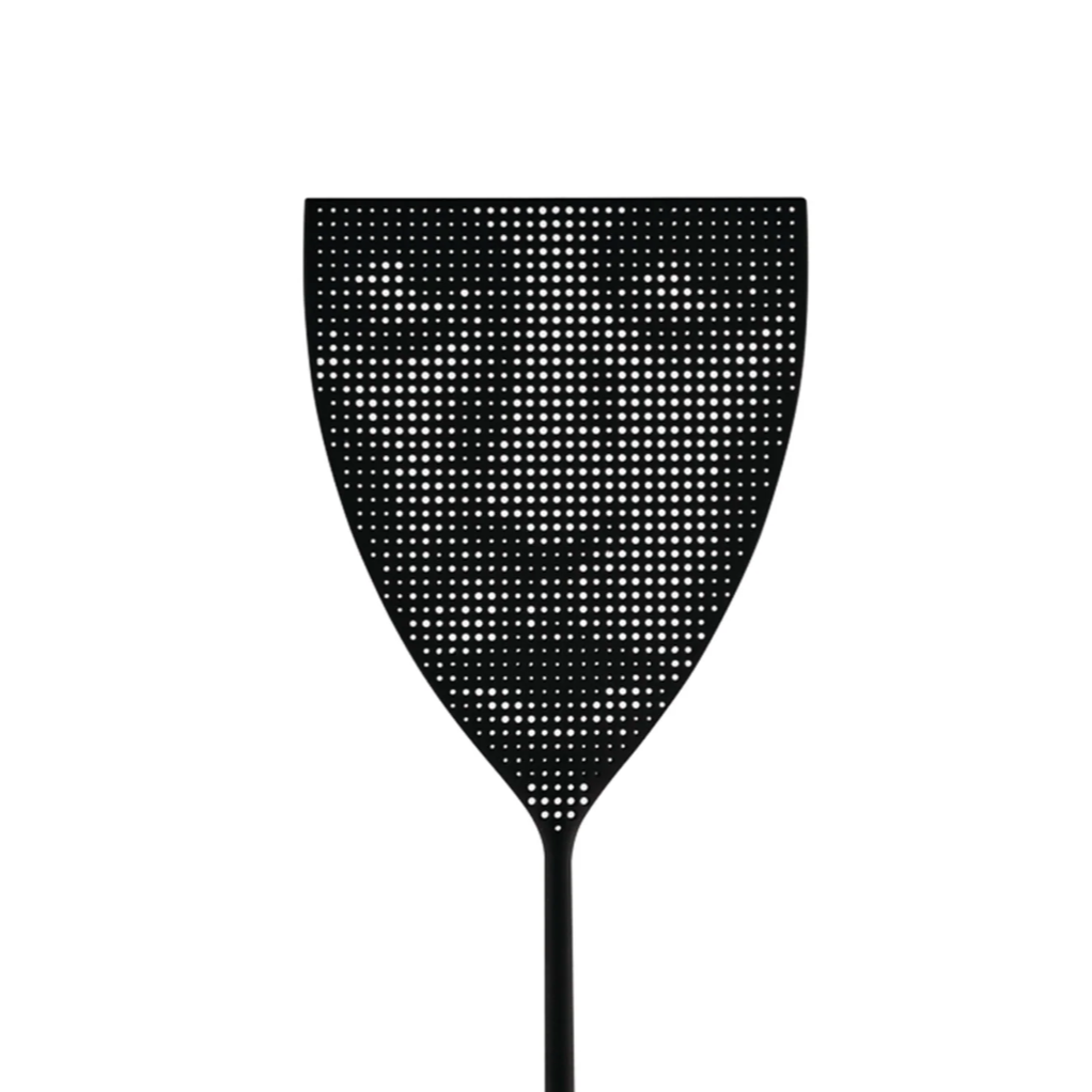 Fly-swatter in thermoplastic resin, light blue. Starck's output spans precision mechanisms (such as the clocks or the radio) and seemingly everyday objects, such as the Dr. Skud fly swatter by Alessi which, when moved, reveals a human face.