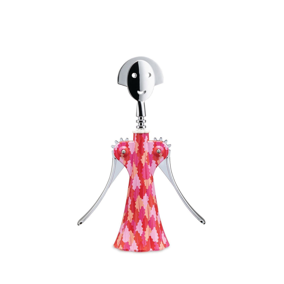 To celebrate the iconic pair of corkscrews designed by her father Alessandro, Fulvia Mendini has imagined a fairytale in an oak forest in which the two characters dance in an endless search for desires and secrets. Anna G. wears a new tree dress, an eye-catching pattern that emphasises the soft and delicate design of this iconic corkscrew, in shades of pink.