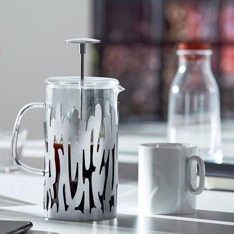 This elegant filter coffee maker features a perforated pattern, representing tree bark in a sleek, modern finish. The press filter offers coffee with a distinct taste, perfect for indulging in an intense brewed coffee.To quote the designers on their inspiration for the Bark Collection, we wanted nature to flow unimpeded into the house, like background music composed of the wood’s smells, muffled sound, of light and shadow.
