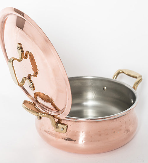 Copper Rounded Casserole by Tanucci is ideal for roasting, stewing, venison, soups and legumes.