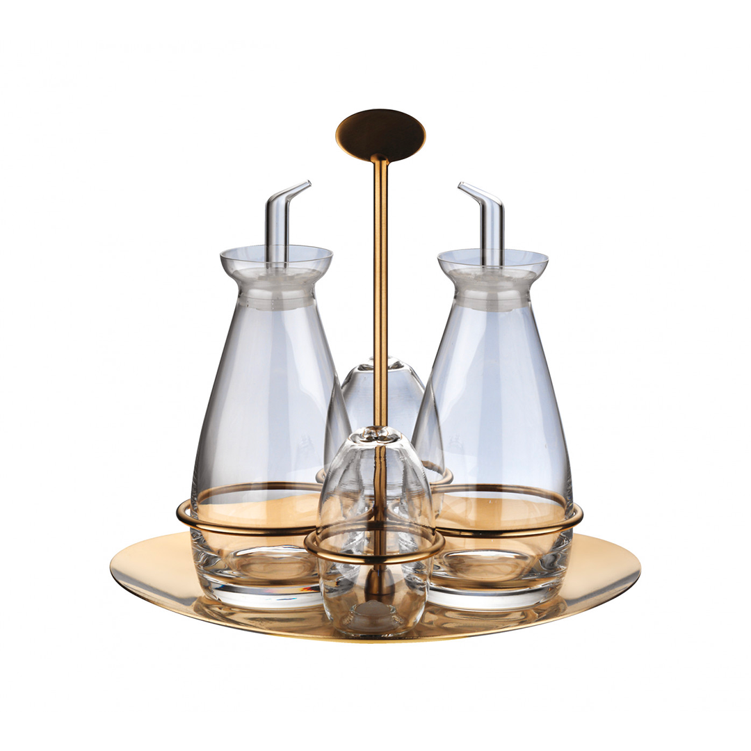 A stylish table always demands the finest dining set, and this  elegant brushed gold cruet and salt set will add a real touch of exclusivity to your table, sure to impress even the most discerning guests. Part of the Due Ice Oro Luxury collection by Mepra, an exclusive collection of tableware and serveware with striking lines and precious finish.