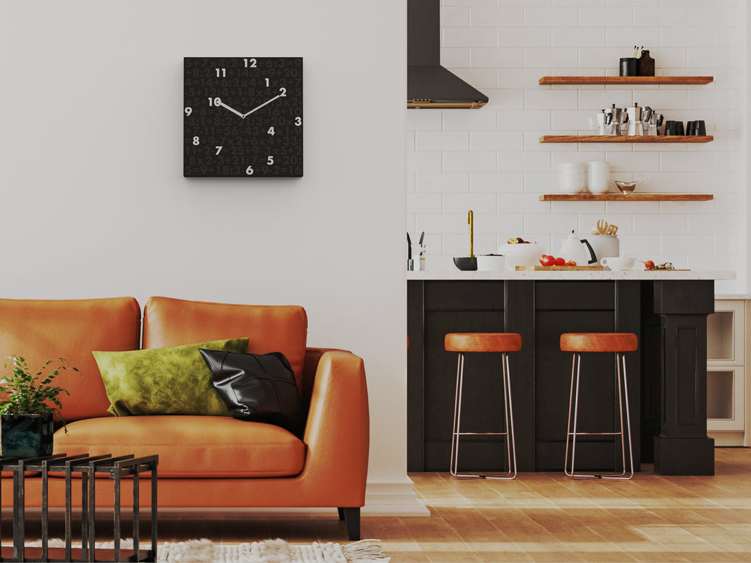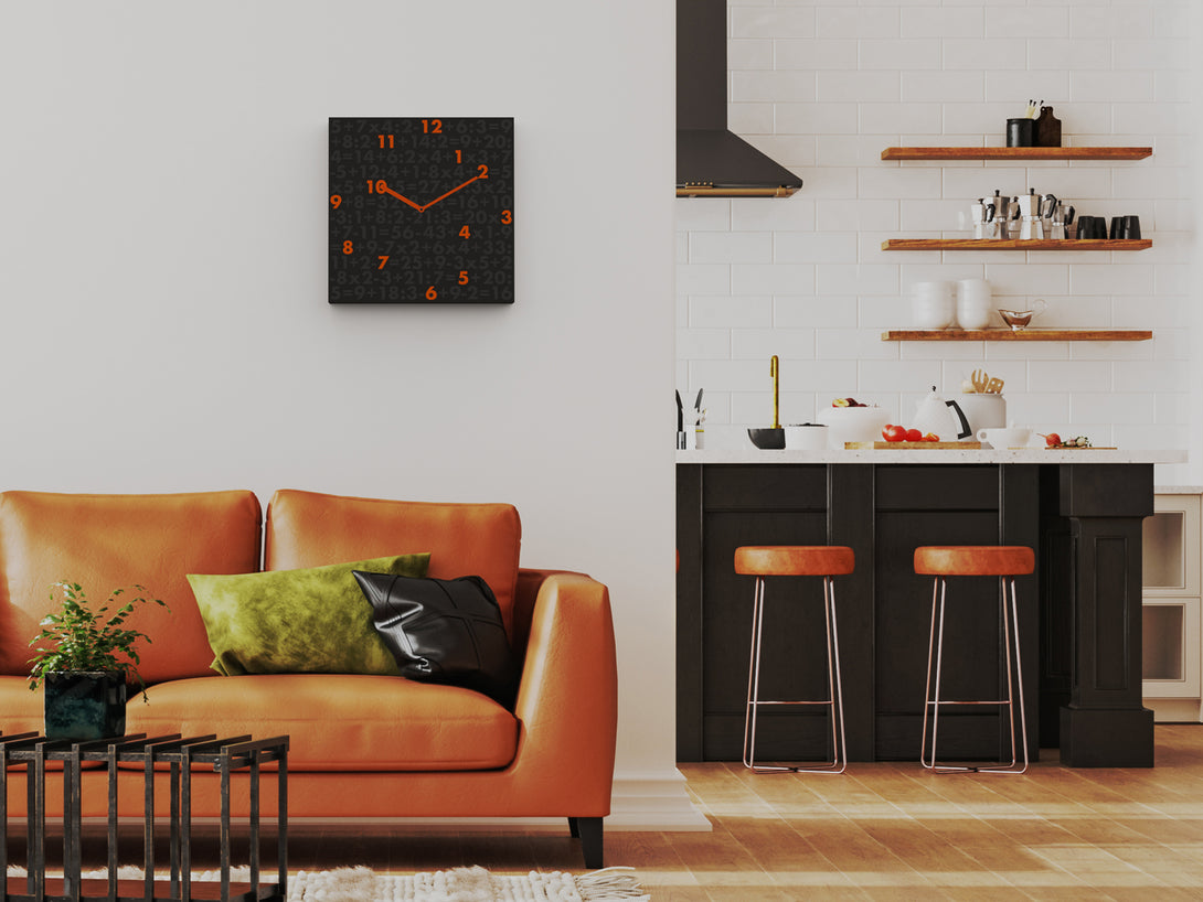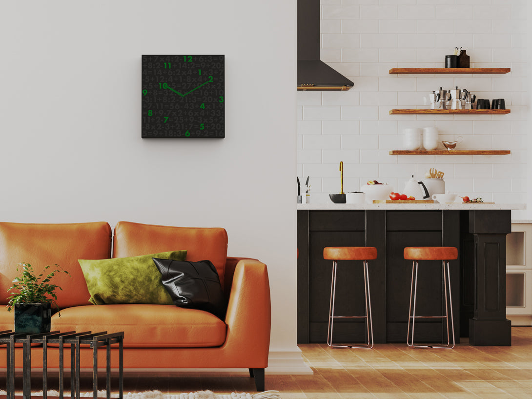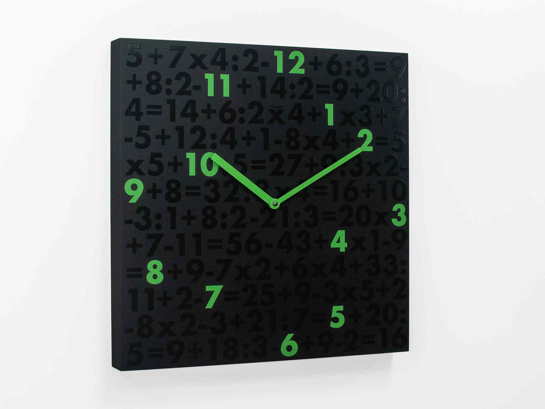 Equo is the wall clock for those who love or hate mathematics. Because the hours on the dial seem to be the result of a continuous series of operations. The writings are glossy and slightly in relief and generated with a particular technique that generates a pleasant contrast with the non-toxic opaque varnish with which the wooden structure is finished. Ideal for any home or office. German made battery operated quartz movement.