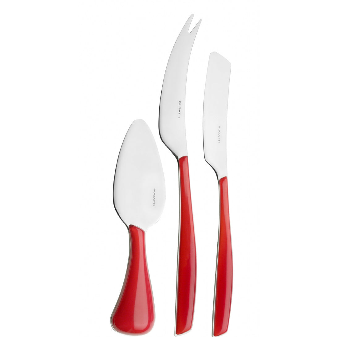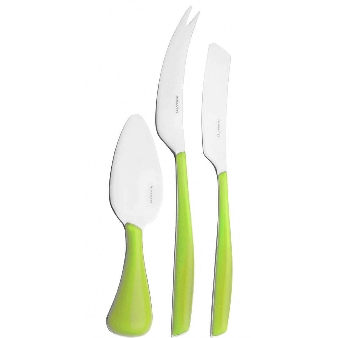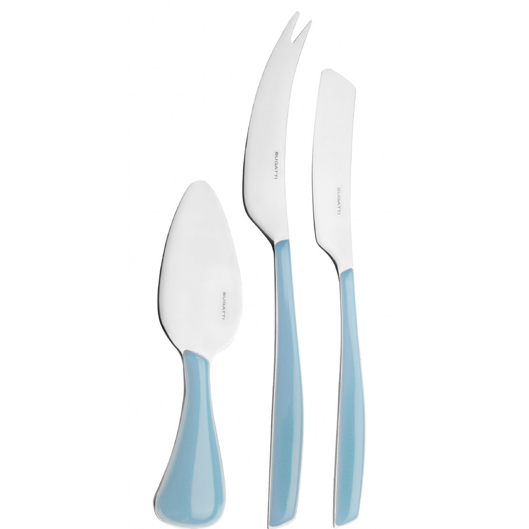 The collection is made of 18/10 stainless steel with a SAN handle produced using Bugatti Pro-Tech System double stamping technology, which gives the colour a transparent and always vivid effect. This cutlery is dishwasher safe.
