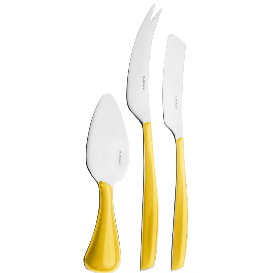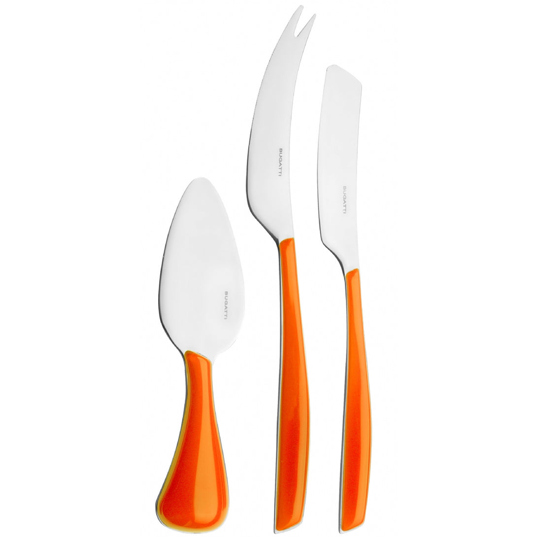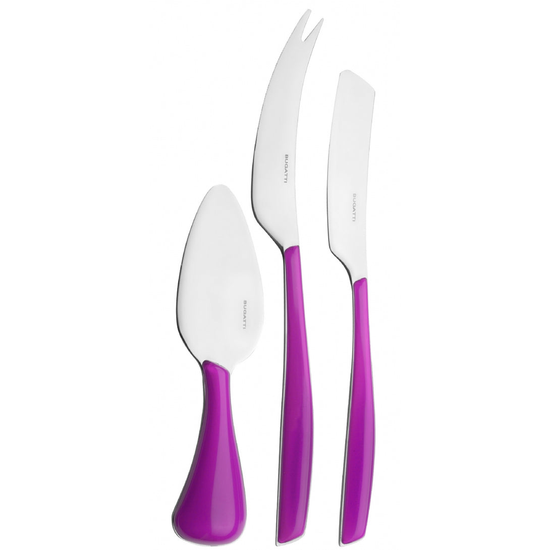 The collection is made of 18/10 stainless steel with a SAN handle produced using Bugatti Pro-Tech System double stamping technology, which gives the colour a transparent and always vivid effect. This cutlery is dishwasher safe.