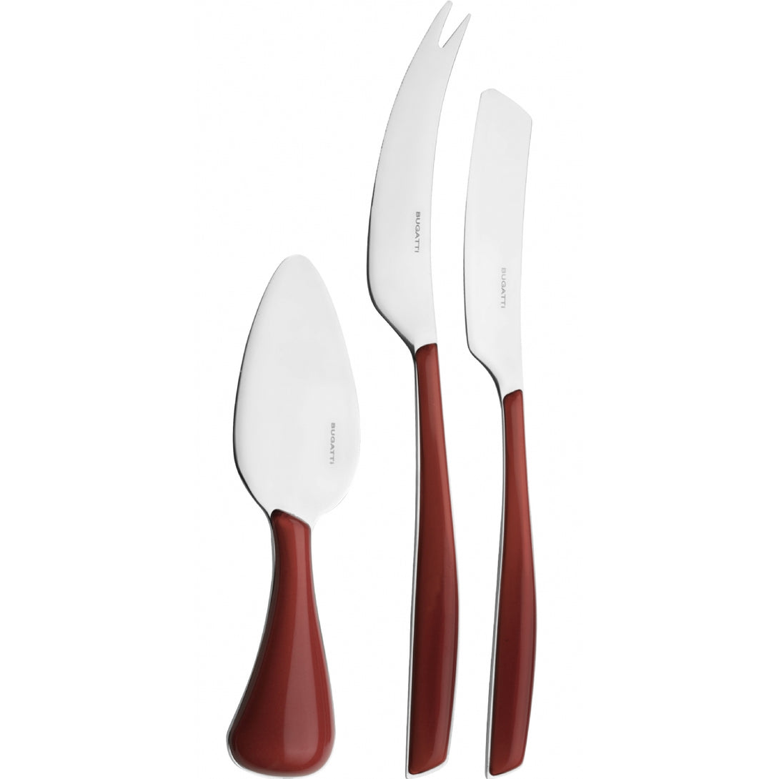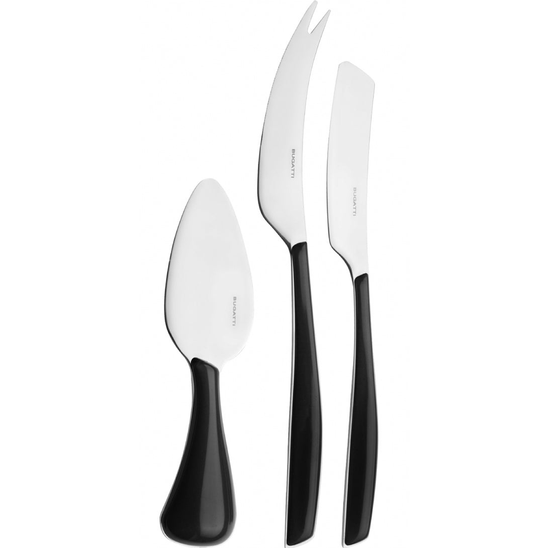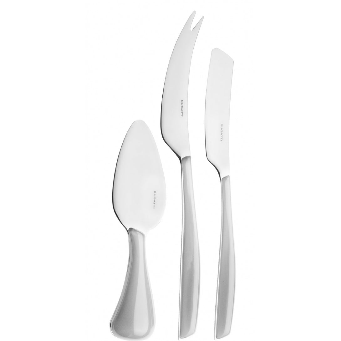 The set includes one parmesan/hard cheese knife, one soft cheese knife and one cheese 2 points-deer knife. Presented in a lithographed box with window, the set is also perfect as a present.