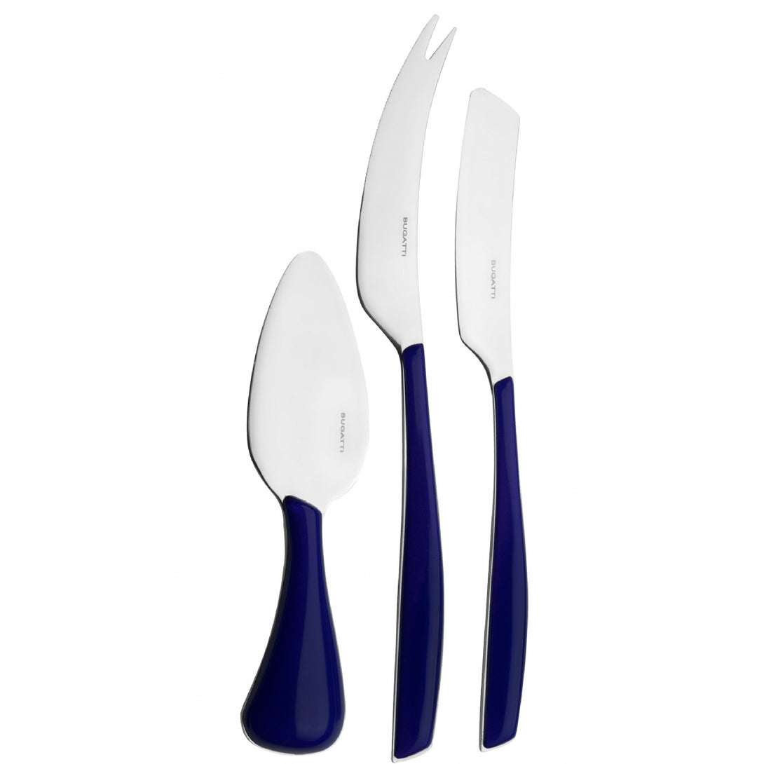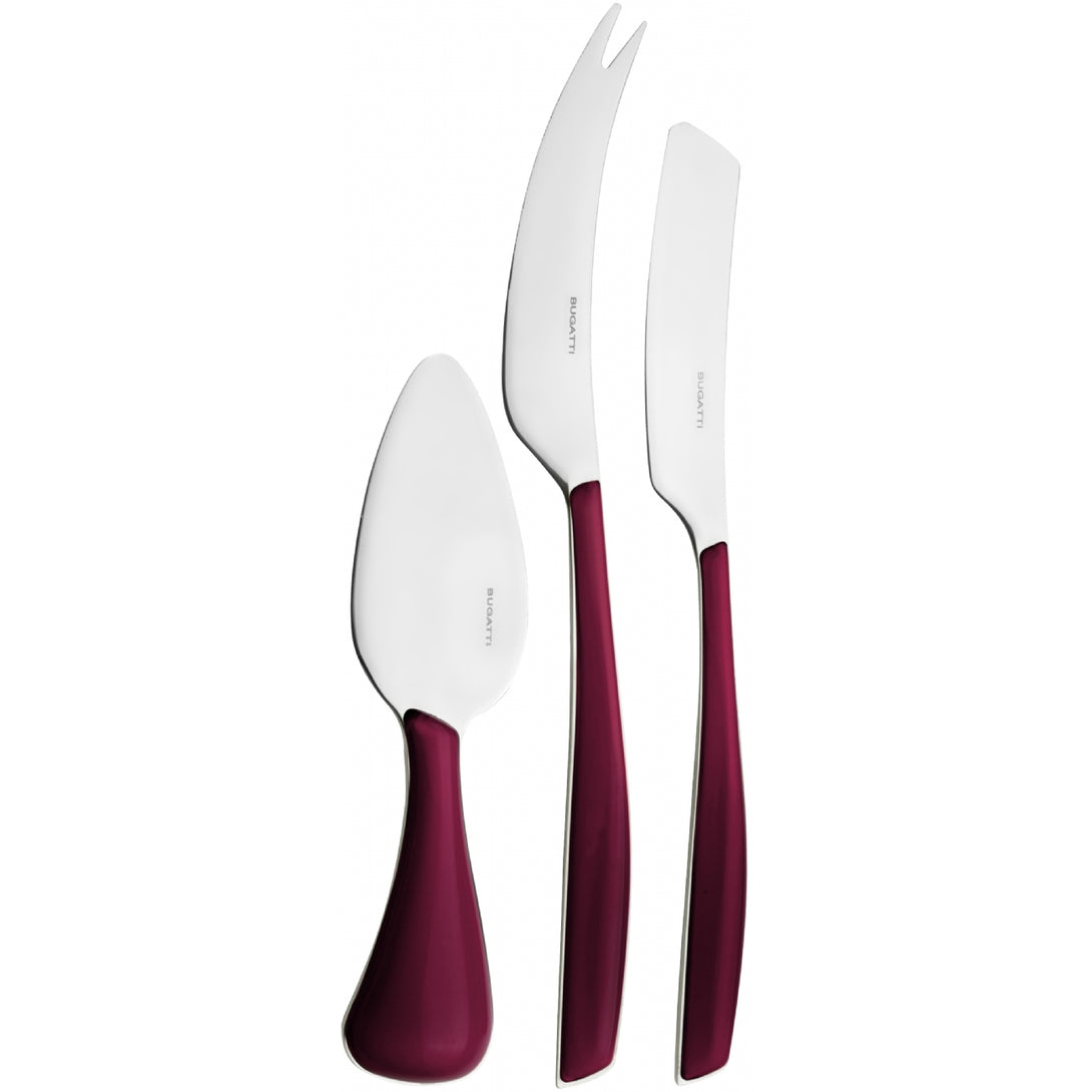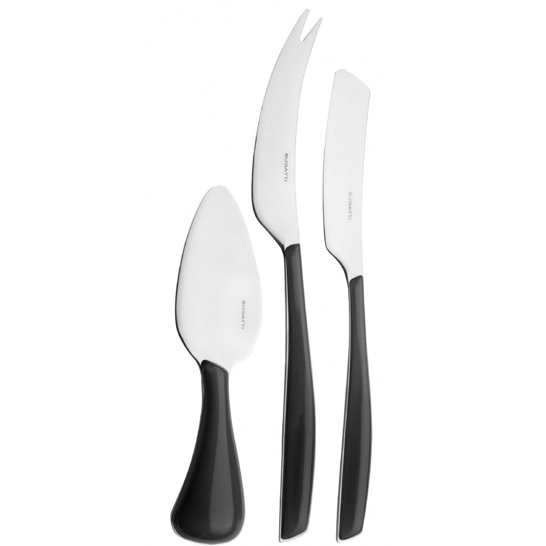 The set includes one parmesan/hard cheese knife, one soft cheese knife and one cheese 2 points-deer knife. Presented in a lithographed box with window, the set is also perfect as a present.