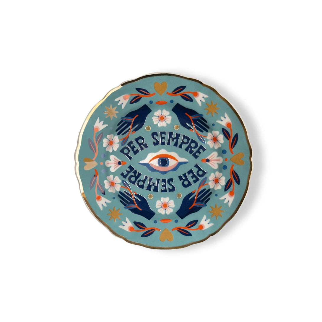 MATERIALS: Porcelain dinner plates decalco colorful gold details - Dishwasher safe Max 250 washes - Not microwave safe.
