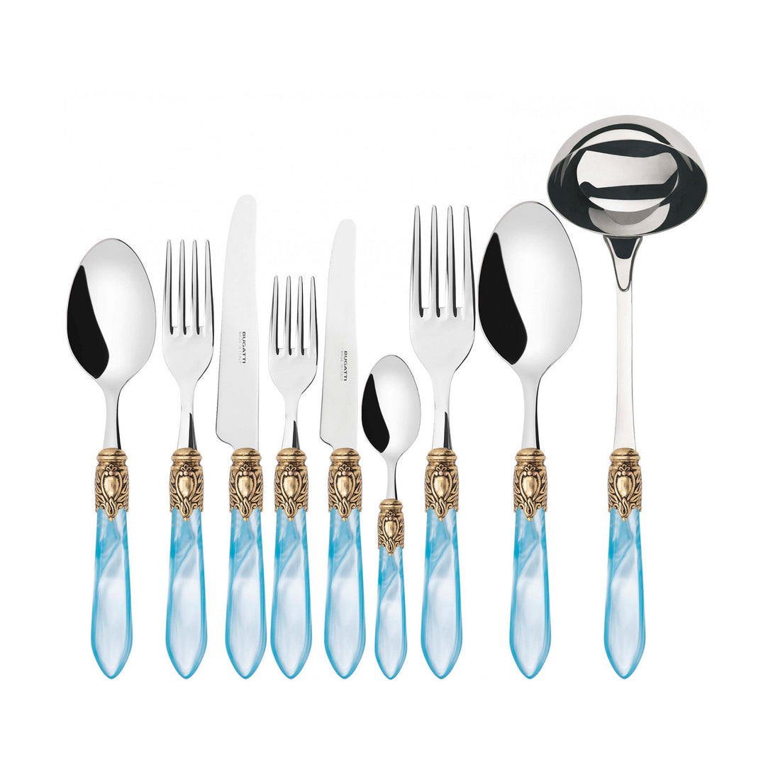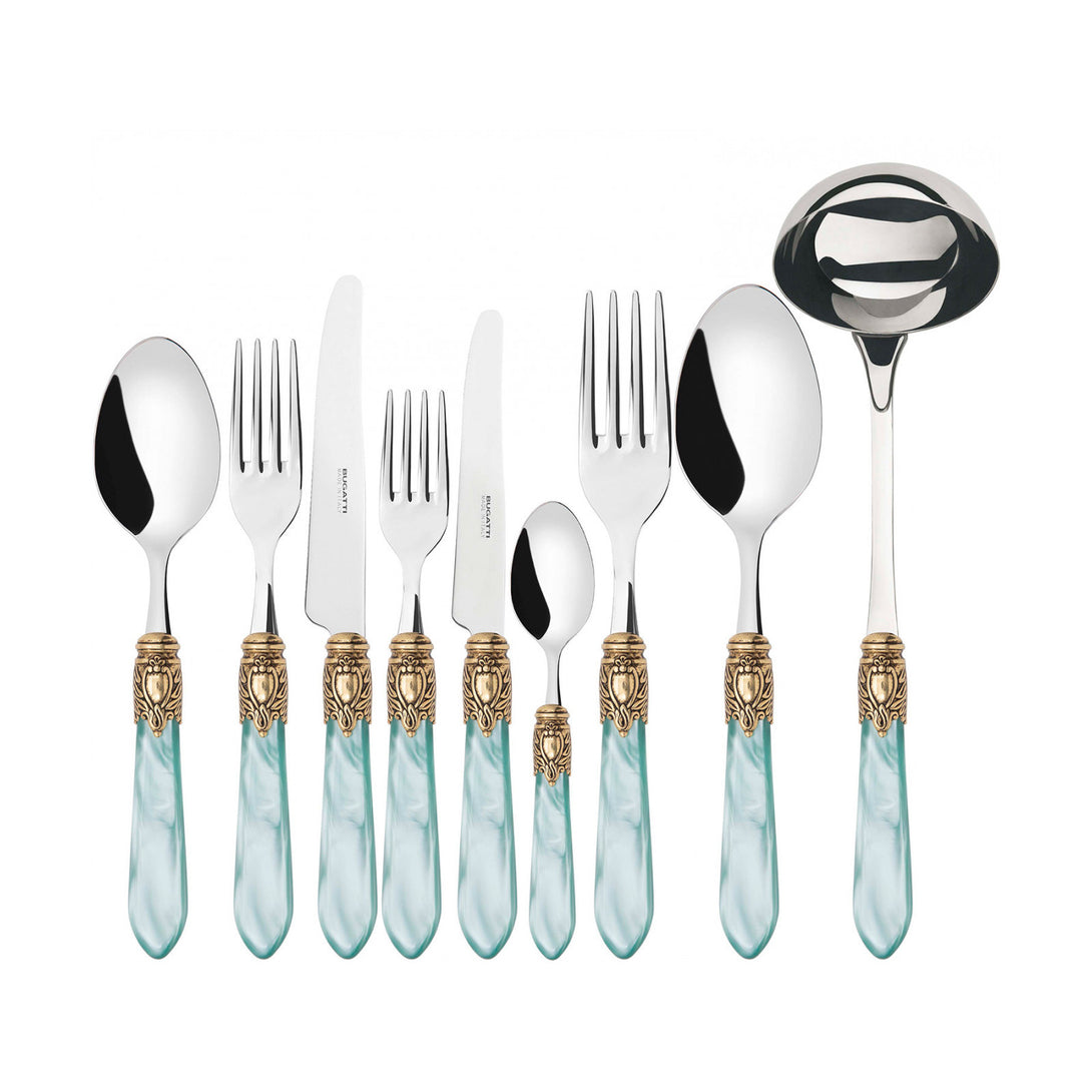 Observe the most important rules of etiquette by bringing coloured Oxford Gold-plated Ring cutlery to the table. To ensure an elegant table with a regal spirit, each piece in the Oxford range is made of 18/10 stainless steel, with an acrylic handle embellished with a sophisticated antique gold-finished ring that resembles a noble coat of arms.