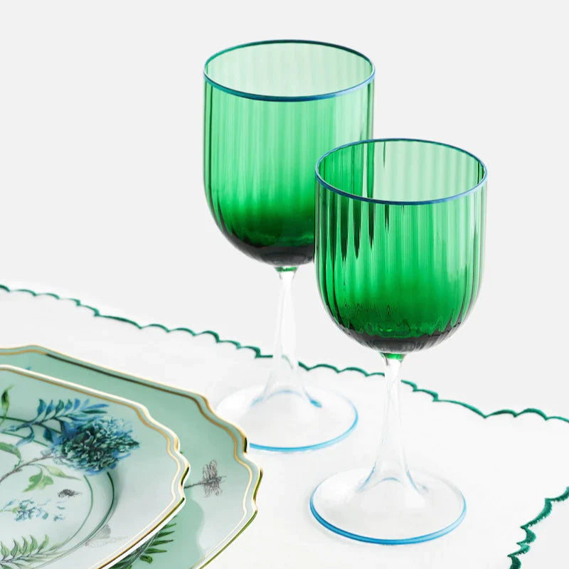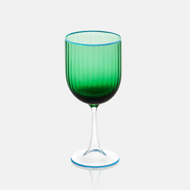 STRIPED RED WINE GLASS SET OF 2 GREEN